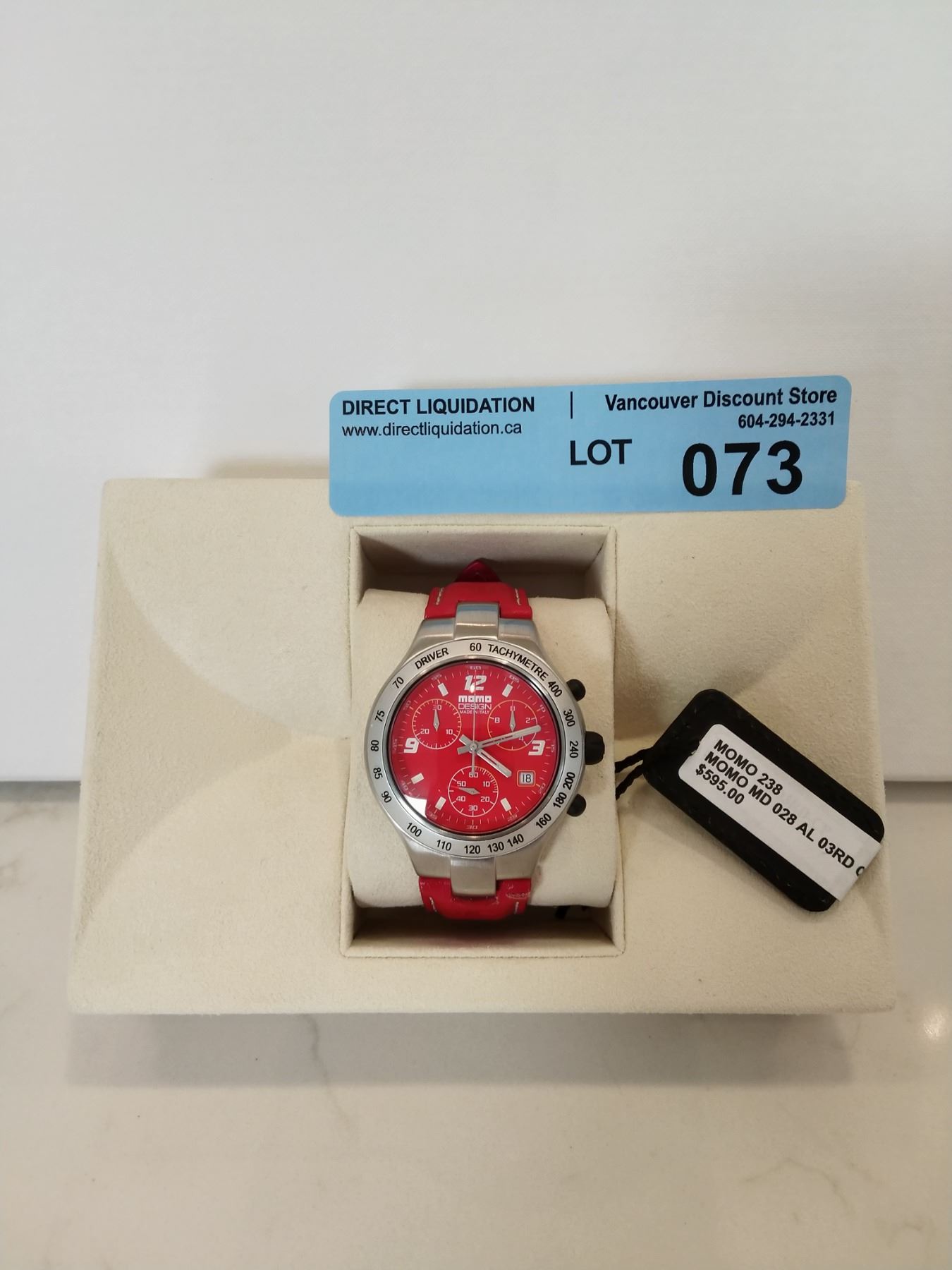 NEW WITH TAGS. MADE IN ITALY. WATER RESISTANT. CHRONO SWISS MOVEMENT. RETAIL - $595 MOMO DESIGN, with its Italian roots firmly planted in racecar accessories, turns watches into a modernized menu of high-tech components. Big, masculine-oriented models are even better with automatic Swiss-made movement