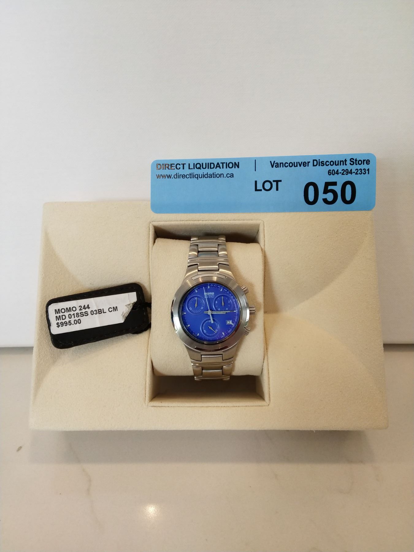 NEW WITH TAGS. MADE IN ITALY. WATER RESISTANT. SWISS CHRONOGRAPH MOVEMENT. SAPPHIRE CRYSTAL RETAIL - $995. MOMO DESIGN, with its Italian roots firmly planted in racecar accessories, turns watches into a modernized menu of high-tech components. Big, masculine-oriented models are even better with automatic Swiss-made