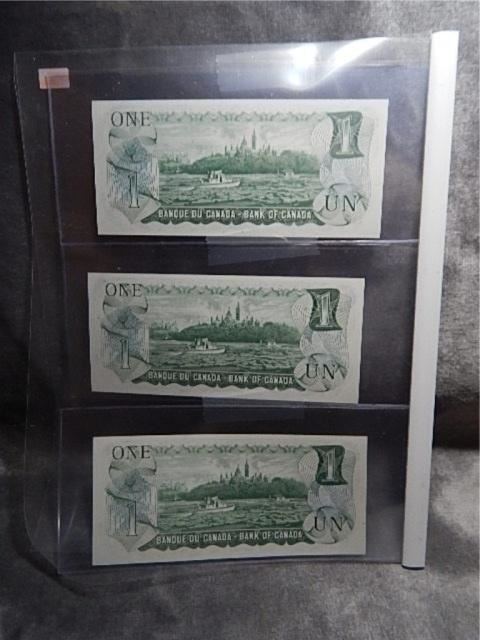 MONEY'S - UNCIRCULATED CANADIAN $1 BILLS (1973) - SEQUENTIAL SERIAL #'S - 3 X BID