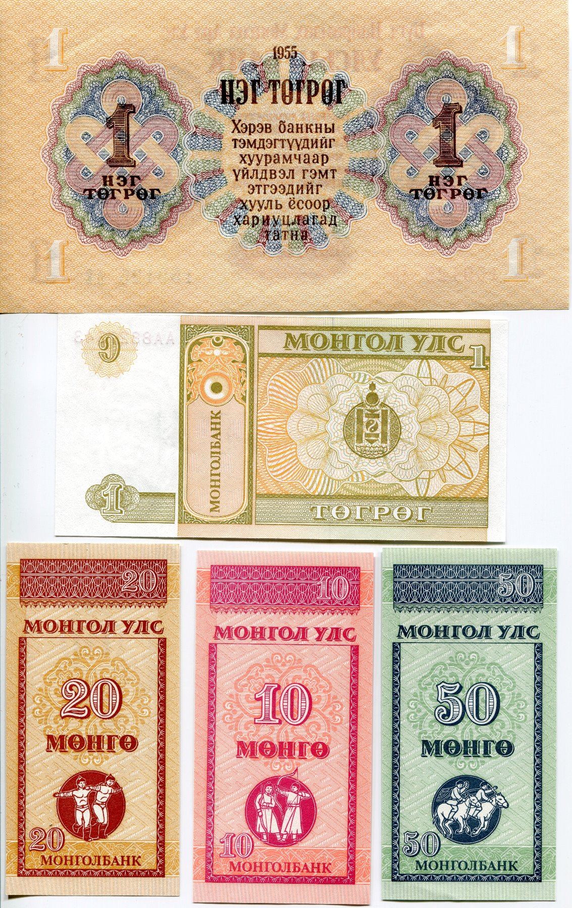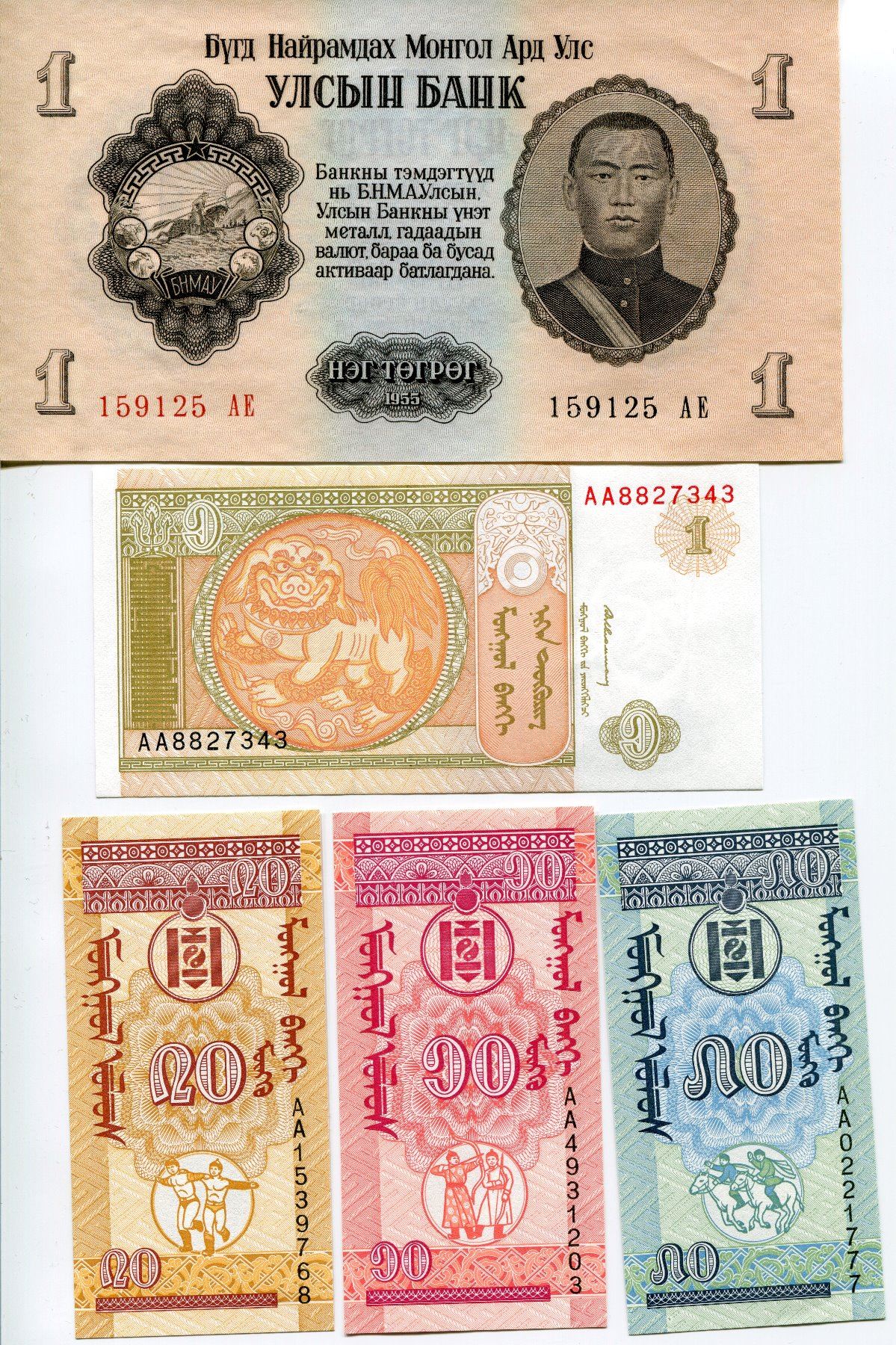 MONGOLIA 5 BANK NOTES KNOWN AS TUGRIK