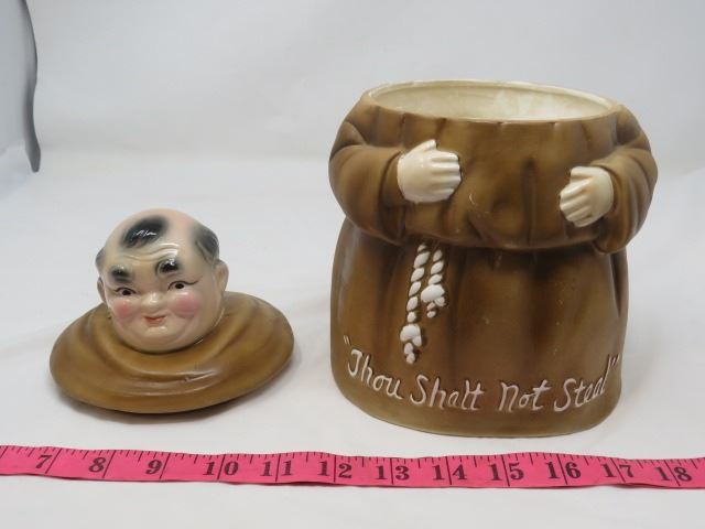 MONK COOKIE JAR (MADE IN JAPAN) *9.5" T X 5" DIAMETER*
