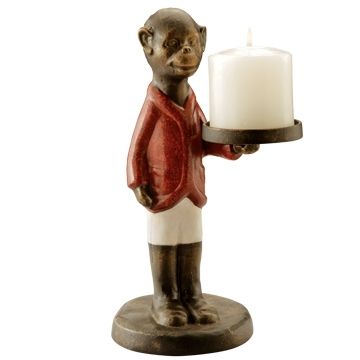 MONKEY JOCKEY CANDLE HOLDER - 12"H 7"W 6.5"D - ALUMINUM