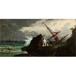 MONOGRAMMIST D. V. 19th century Skeppsbrott Signed D. V. Oil on panel, 24 x 38 cm.