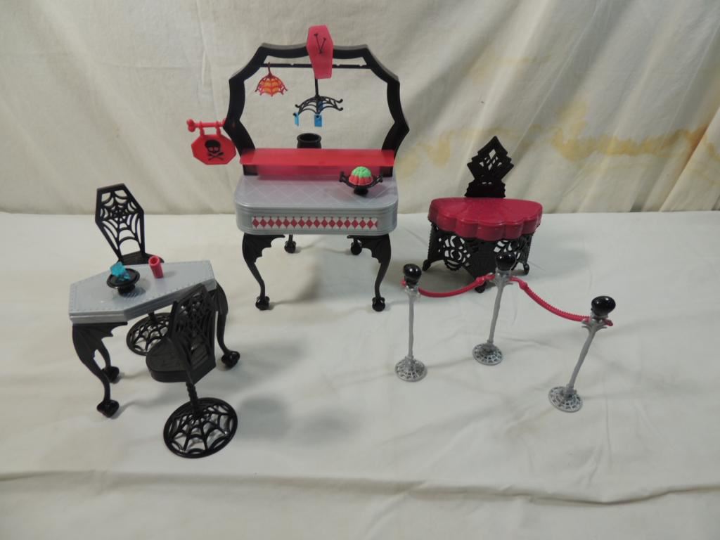 DRACULAURA MONSTER HIGH DIE-NER PLAYSET, MONSTER HIGH ACCESSORIES, DOLL ACCESSORIES, MONSTER HIGH AS SHOWN SEE PHOTO FOR MORE DETAILS.