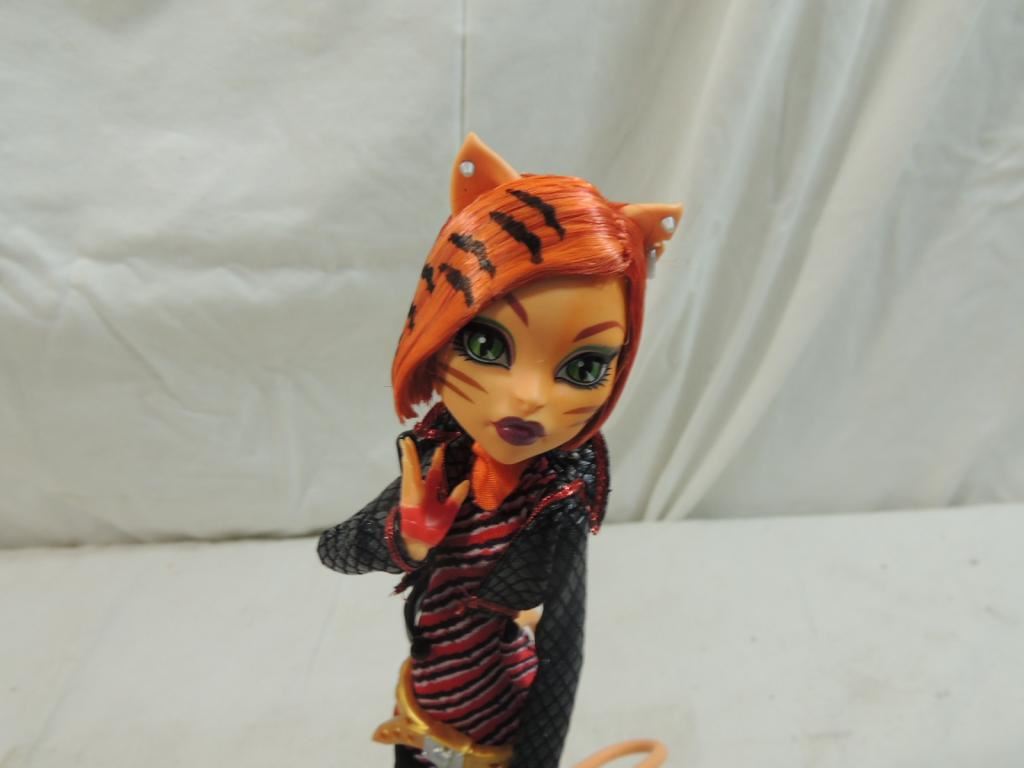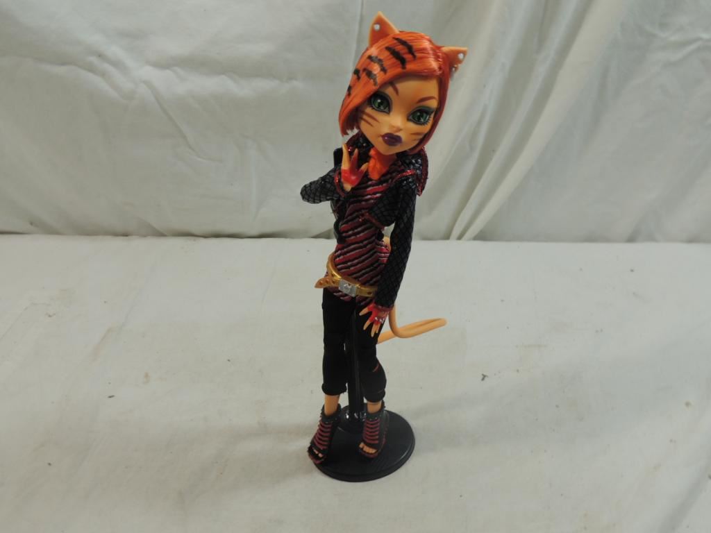 MONSTER HIGH DOLL, FASHION DOLL, ON STAND, ORGINIAL OUTFIT, GREAT CONDITION, MONSTER HIGH CHARACTERS, GIRLS ARE FREAKISHLY FABULOUS COOLEST GHOULS IN SCHOOL WITH THEIR TRENDY FASHIONS. AS S HOWN SEE PHOTO FOR MORE DETAILS.