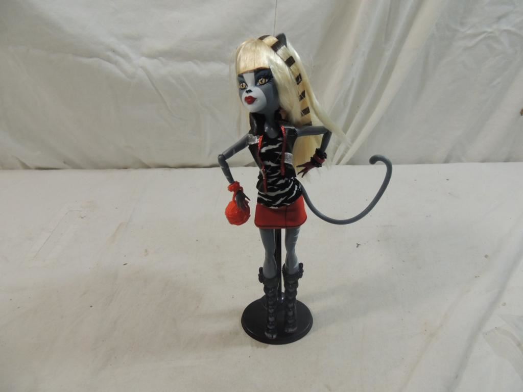 MONSTER HIGH DOLL, FASHION DOLL, ON STAND, ORGINIAL OUTFIT, GREAT CONDITION, MONSTER HIGH CHARACTERS, GIRLS ARE FREAKISHLY FABULOUS COOLEST GHOULS IN SCHOOL WITH THEIR TRENDY FASHIONS. AS S HOWN SEE PHOTO FOR MORE DETAILS.