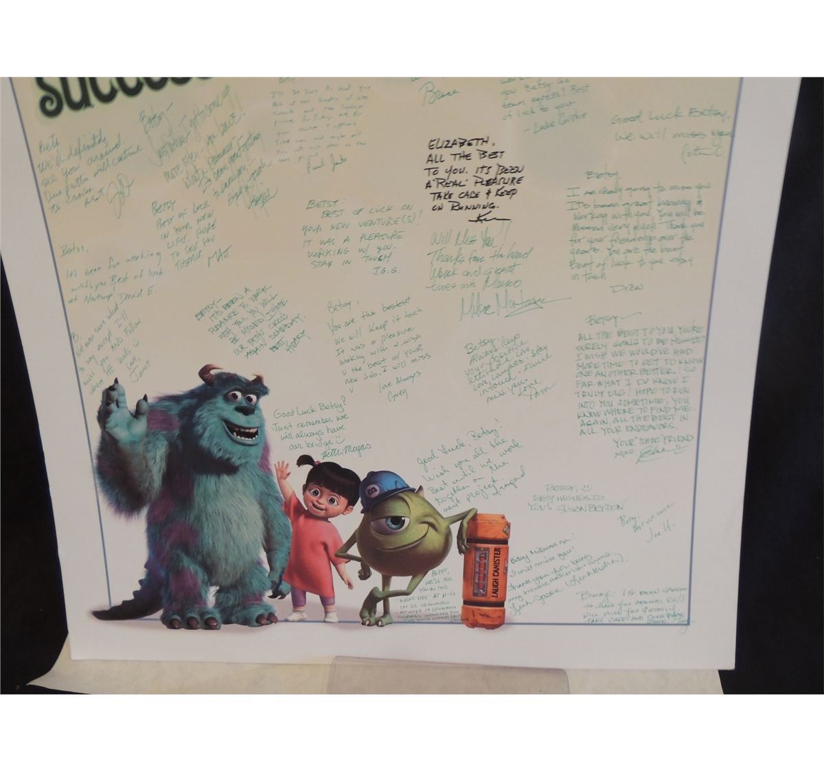 A OOAK MONSTERS INC poster with a plethora of signatures and sentiments written all over it! Unsure who Betsy is, but she sure was well Loved by the cast and crew!