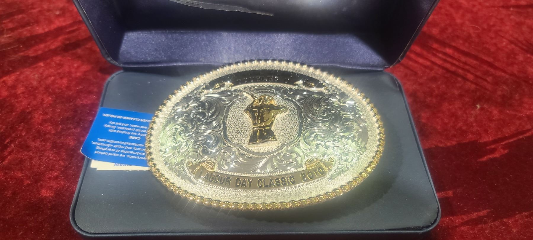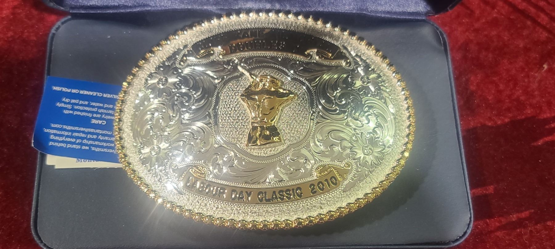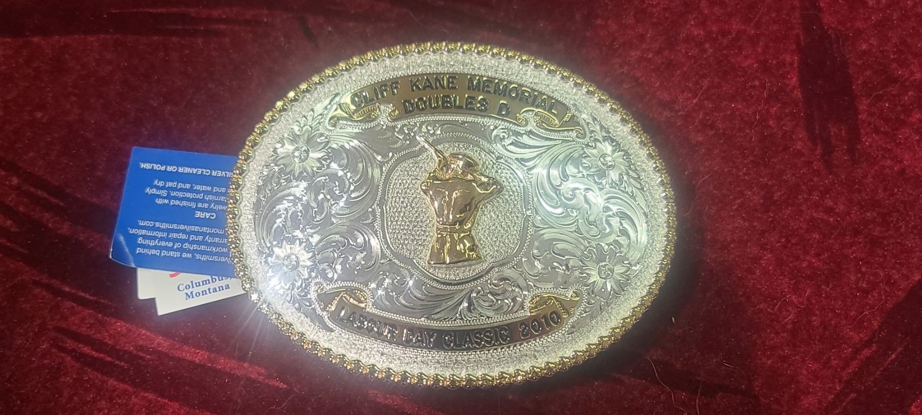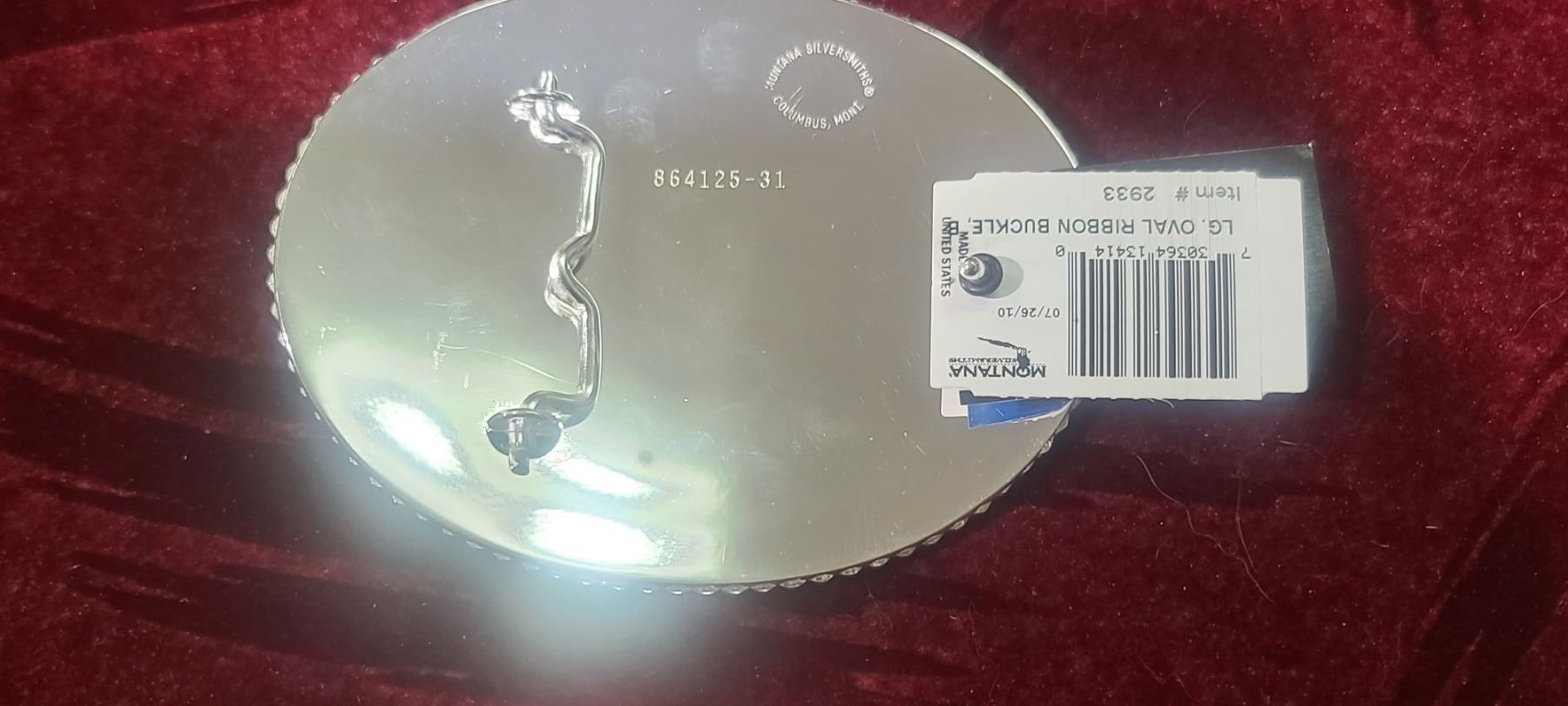 MONTANA SILVER SMITHS LARGE OVAL RIBBON BUCKLE - CLIFF KANE MEMORIAL DOUBLES