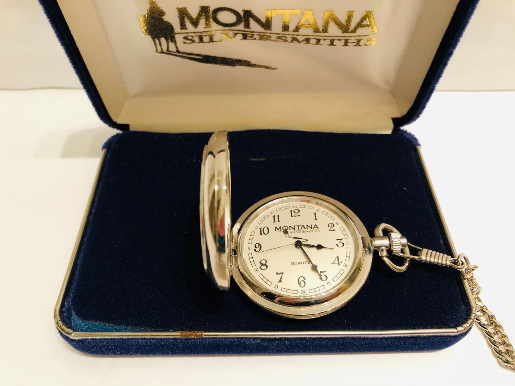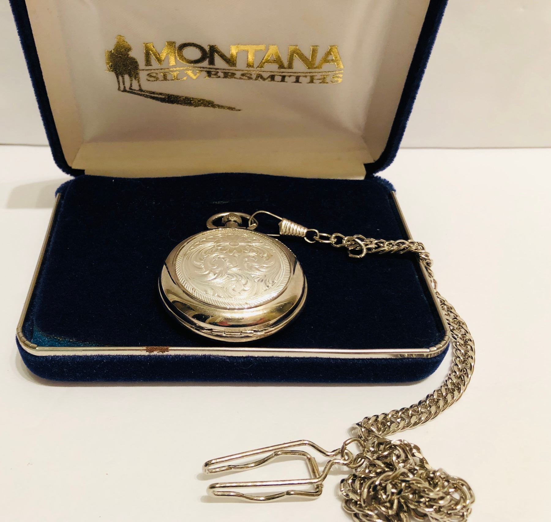 MONTANA SILVERSMITHS POCKET WATCH WITH CASE