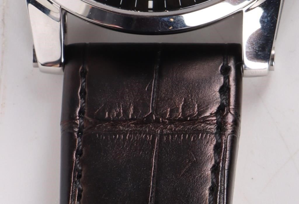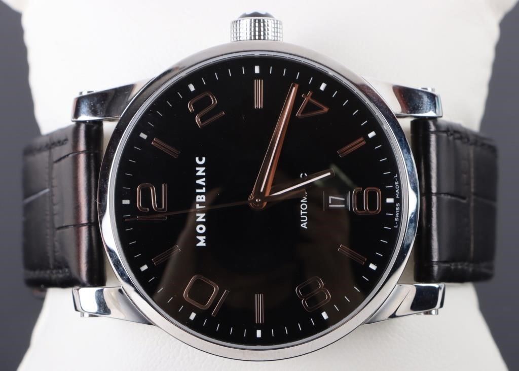 Montblanc Timewalker 7070 automatic men's stainless steel watch. Watch has a deep brown leather band and is in working order.