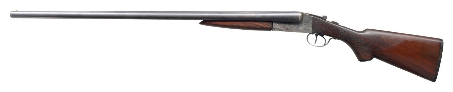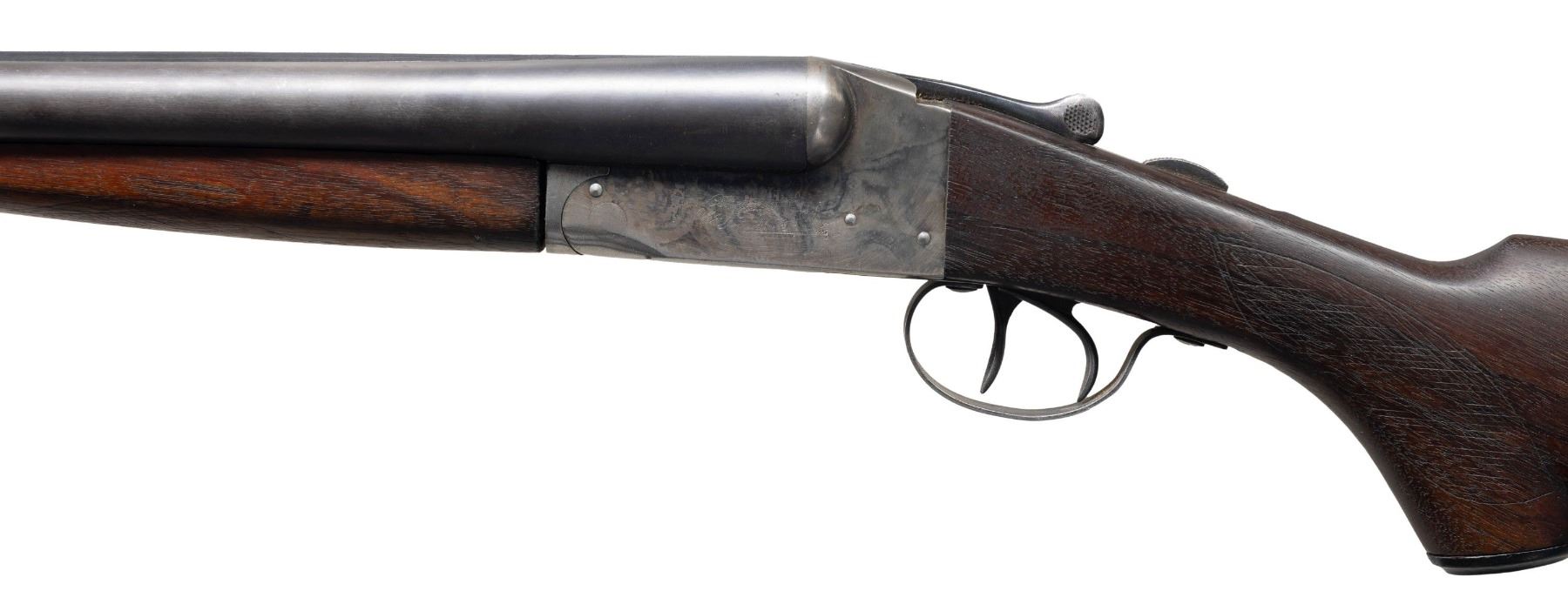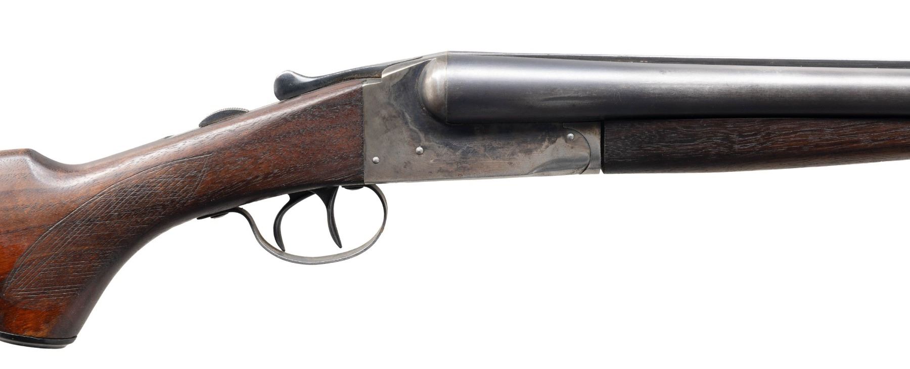 SHOTGUN. Cal. 12ga, 2 3/4". S# 14592. Mfg. by Ithaca as trade named Lefever Nitro Special. Bbls. 30" w/ bone beads. Full chokes. Boxlock action w/ dbl. triggers & extractors. Walnut stock set w/ replacement buttplate. CONDITION: fair fading blue with gray patina & a few sm. dents. Case colored receiver faded to gray with pinprick patina. Worn wood finish with marks. Bore shows scratches & fouling. Forearm iron screw not secure to forearm allowing movement when functioning. (25-4346/MD). CURIO. $400-600.