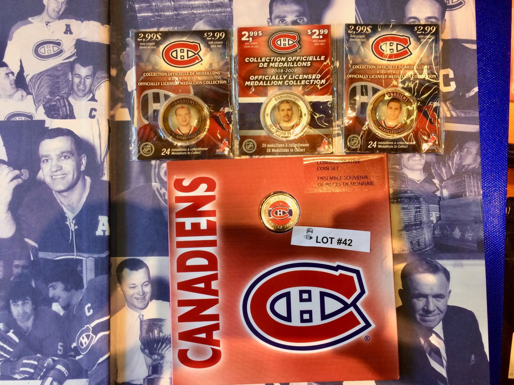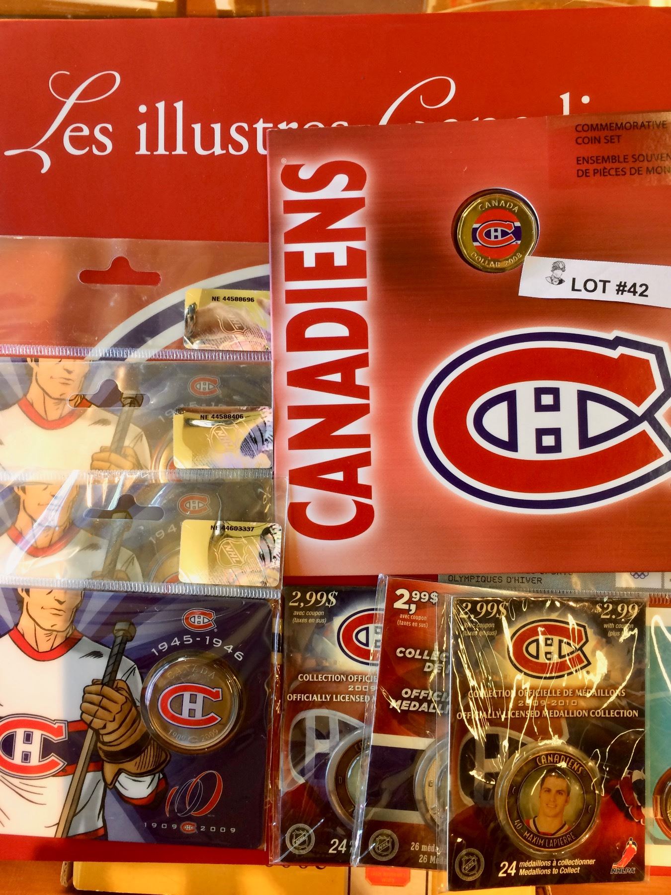 MONTREAL CANADIENS COLLECTION, COINS, BOOK, MEDAILLON, LOT OF 9 PCES.