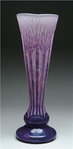 MONUMENTAL CHARDER CAMEO VASE. This lovely Art Deco vase features cameo decoration in amethyst and blue. Signed in cameo on side of vase "Charder". SIZE: 19 in. t. CONDITION: Very good to excellent. 5-60617