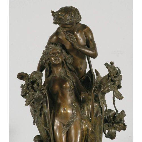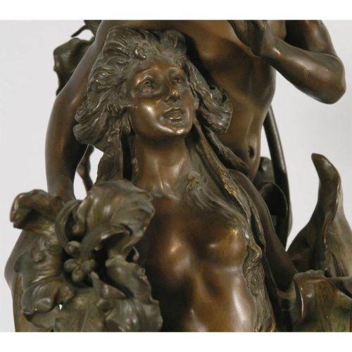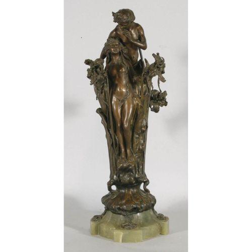 MONUMENTAL FRENCH ART NOUVEAU BRONZE The Metamorphosis of Daphne 31" high (including onyx base) unmarked, circa 1900 CONDITION REPORT: a few minor rubs, otherwise excellent.