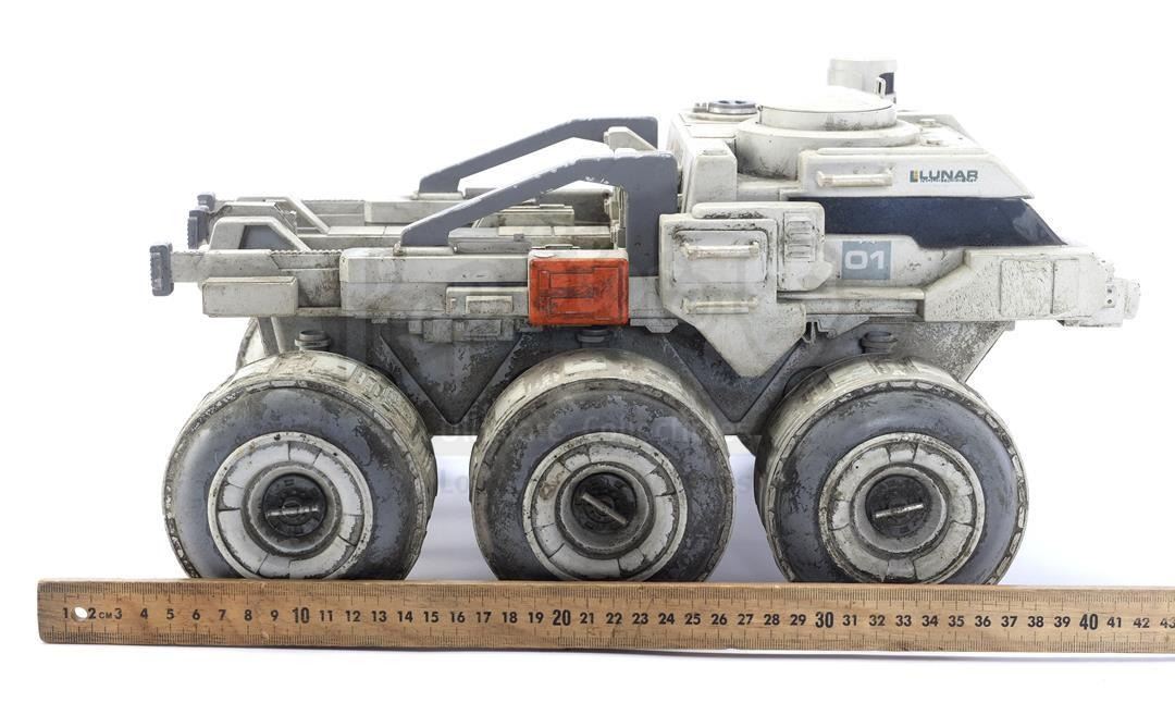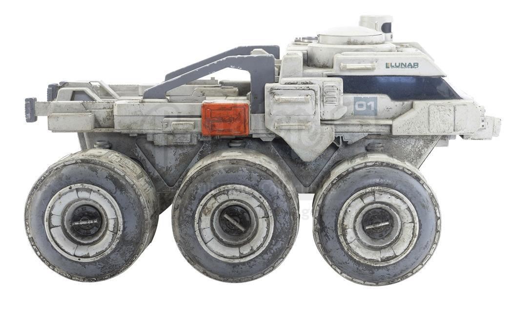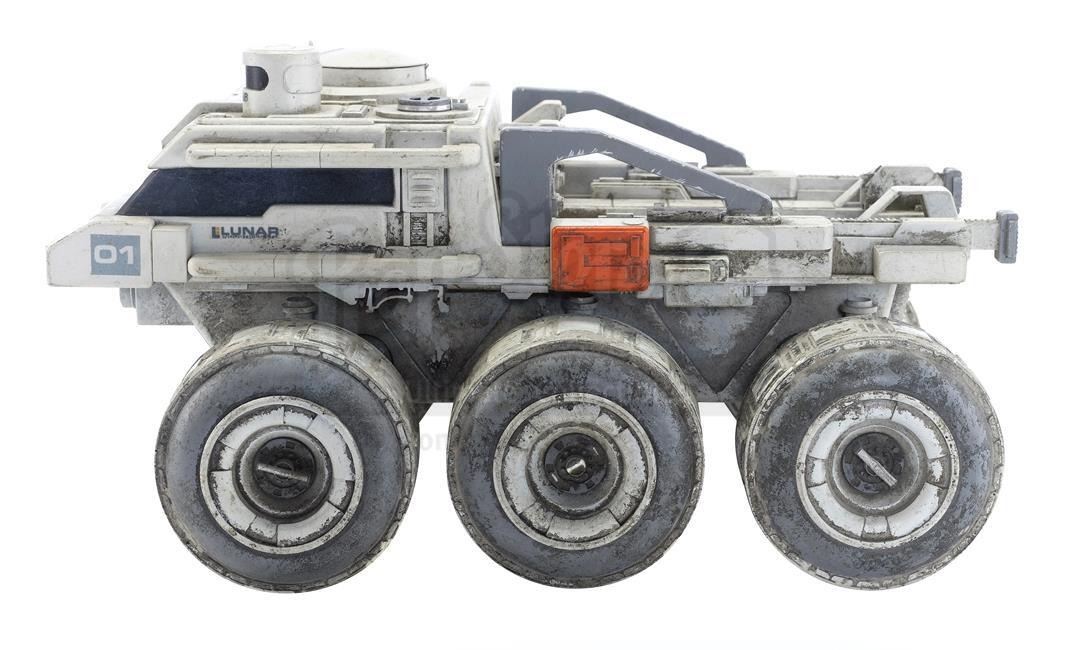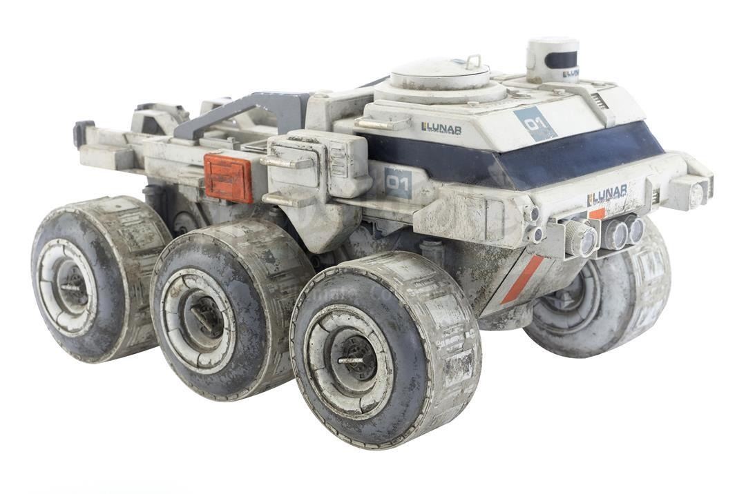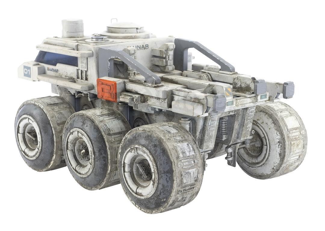 A Sarang Rover 01 model miniature from Duncan Jones' science-fiction film Moon. Sam Bell (Sam Rockwell) traversed the surface of the moon in his Lunar Industries rover.
