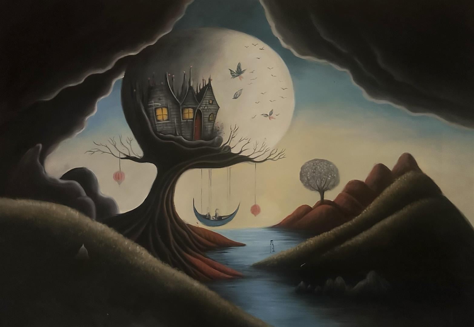 A stunning Surreal painting by the emerging young artist Mani. 20"x30" original on canvas, with COA