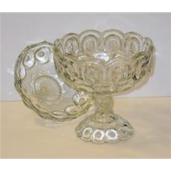 Moon and Star pedestal compote. Clear glass 12" tall x 8" wide. Made from the 1930's through the 1960's by L.G. Wright and in the 1940's by L.E. Smith. Condition: Excellent