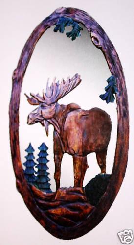 "MOOSE" - 27X47- HAND CARVED - HAND STAINED - MADE OF MANY DIFFERENT HIGH QUALITY WOODS - WELL MAINTAINED - QUALITY