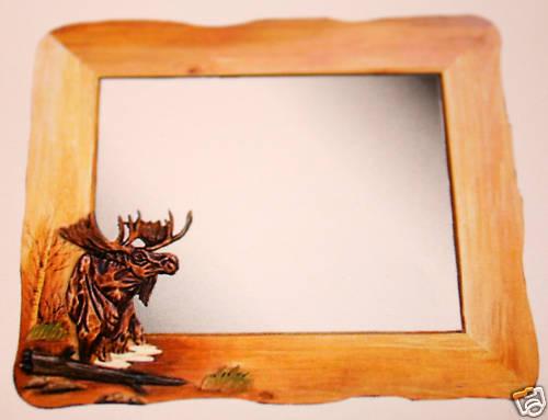 "MOOSE" - 30X26 - HAND CARVED WOOD MIRROR- HAND STAINED - MADE OF MANY DIFFERENT HIGH QUALITY WOODS - WELL MAINTAINED - QUALITY