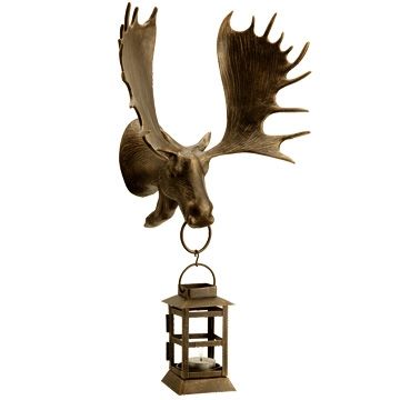 MOOSE WALL MOUNT LANTERN CANDLE HOLDER - 20"H 9"W 8"D - ALUMINUM