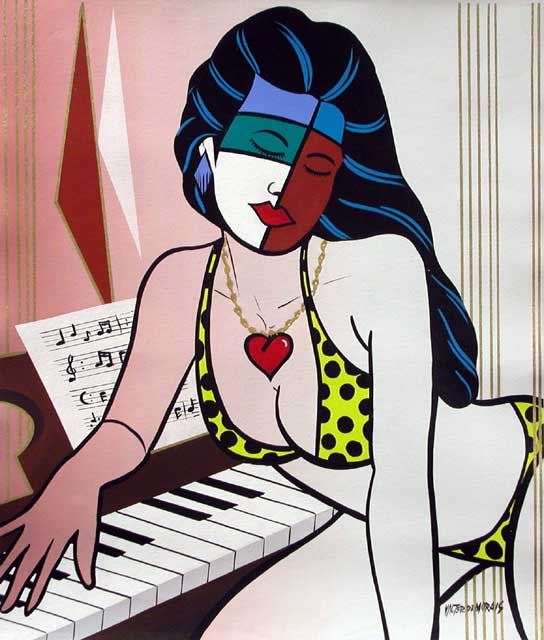 MORAIS THE KEYS OF SEDUCTION SIGNED ORIGINAL ACRYLIC. Artist: Valter Morais - Title: The Keys of Seduction - Medium: Original Acrylic on Canvas - Signature: This one-of-a-kind work is hand-signed by the artist at the bottom of the image - Image Size: Approximately 24 inches x 20 inches - Framed: Unframed on Unstretched Canvas - Details: This work comes with a Certificate of Authenticity - Biography: Born and raised in Brazil, Valter Morais has been committed to the fine arts for most of his life. He graduated in fine arts by the University of Mogi das Cruzes, Sao Paulo, Brazil. He is represented in oil, acrylic, and watercolor in collections all over the world. He has shown in many nationally recognized shows in Brazil, New York, Kansas City, Las Vegas, Hawaii, Paris, Germany, Australia, England, Canada, and other major art centers. He has won award in several art shows including First Place, "World Peace by The United Nation." His "Portrait of Princess Anne" hangs in Buckingham Palace in London. - Warranty: Item GUARANTEED to be as described