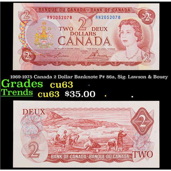 1969-1975 Canada 2 Dollar Banknote P# 86a, Sig. Lawson & Bouey Grades Select CU