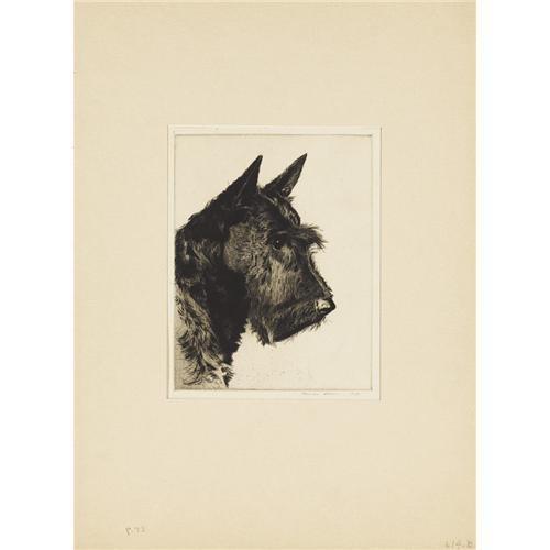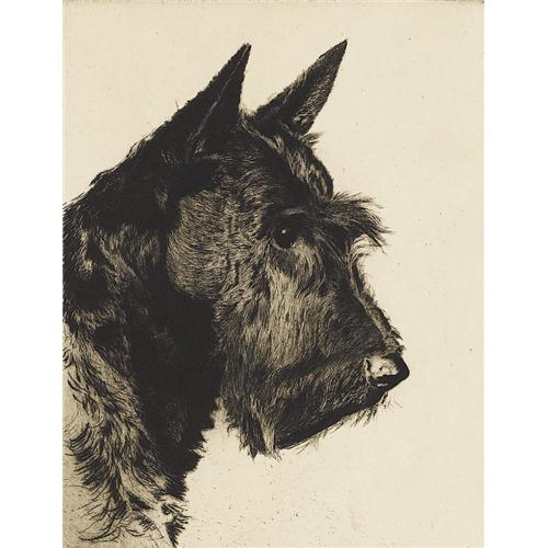 <B>MORGAN DENNIS</B></I> (American 1892-1960)<BR><I>"Scot's Home Surprise"</B></I> Best of Breed Westminster, 1930<BR>Etching<BR>8-7/8 x 6-7/8 inches (22.5 x 17.5 cm)<BR>Signed lower right in pencil: <I>Morgan Dennis / T.P.,</B></I> titled and inscribed in the lower margin<BR><BR>Provenance:<BR>Bessie Heard (McKinney, Texas);<BR>Bessie Heard Trust <B>Condition Report:</B> Normal signs of wear as appropriate with age and mounted with two tabs in the upper corners<BR><BR><b>Shipping:</b> Requires 3rd Party Shipping (<a target="_blank" href="http://www.heritageauctions.com/common/shipping.php">view shipping information</a>)