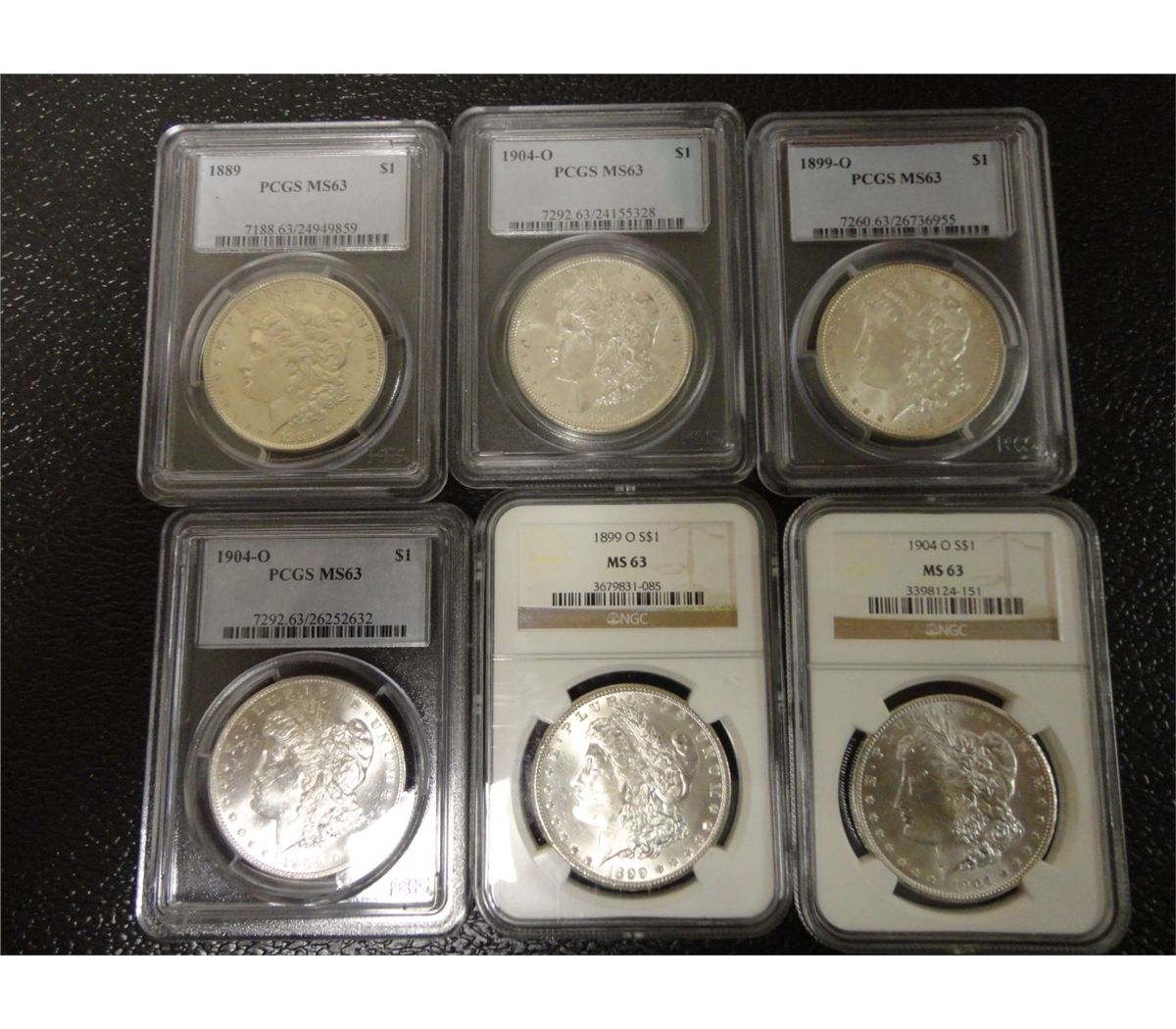ALL COINS PCGS OR NGC MS63: 1889, 1904-O, 1899-O, 1904-O,1899-O. AND 1904-O GREAT COLLECTOR SET