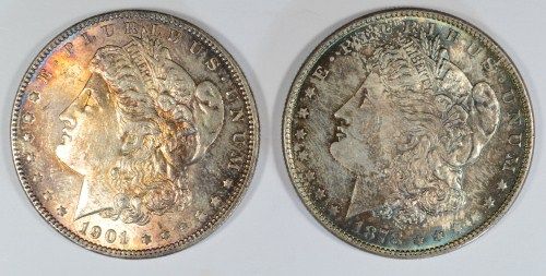 MORGAN DOLLAR LOT WITH SUPER COLORS: 1878-S MS-64, 1901-O MS-64