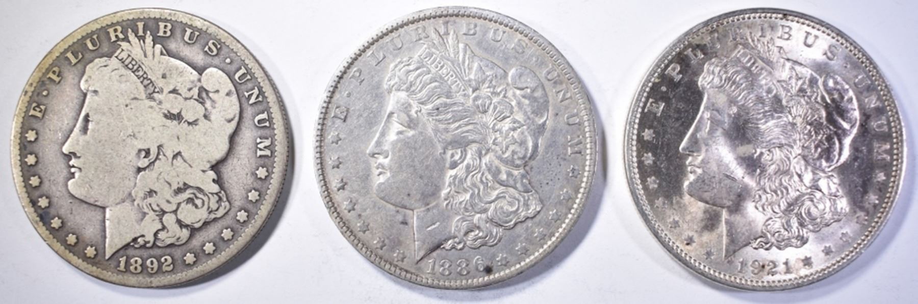 1921 CH BU, 1886-O AU+ & 92-S VG/FINE ESTIMATE $110 - $120.