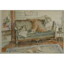 MORGAN, Patrick. "At the Desk, Key West". Aquarelle, signée. École américaine. Watercolour, signed. American School. 15" x 19 1/2" - 38cm x 49.5cm. $450/650