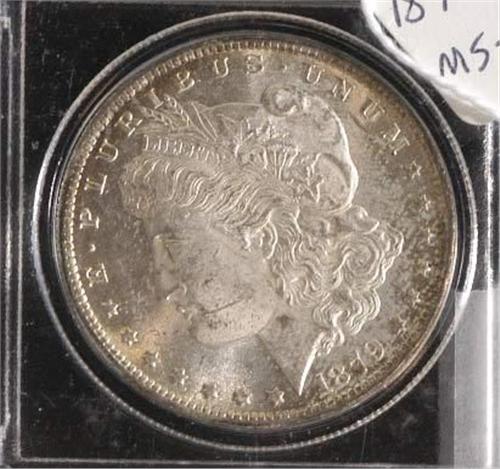 MORGAN SILVER DOLLAR, 1879-O, graded about MS64