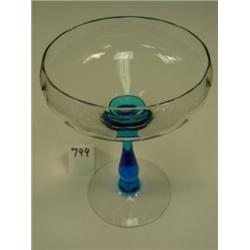 1920's Morgantown compote. #7948. Clear bowl , round foot and blue baluster form pedestal. 7.5" tall, 5.25" wide. Condition: Excellent