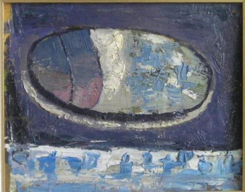 MORRICE, David Rousseau, 1903-1978. "Manitou". Huile sur panneau, titrée et datée "May 1949" verso. Oil on board, titled and dated "May 1949" verso. 8 1/2" x 10 1/2" - 21.5cm x 26.6cm.