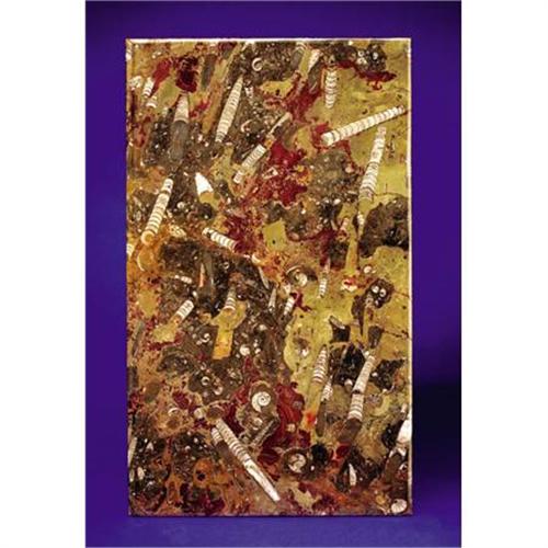 <B>MORTALITY FOSSIL MARBLE TABLETOP</B></I><BR> <I>Orthoceras sp. and others<BR>Devonian<BR>Sahara Desert, near Talmud, Morocco</B></I><BR>Unlike the usual monochrome shades of orthoceras plates from the Sahara desert, this beautiful tabletop displays a rich variety of coloration, with lighter earth-tones and grays broken up by "splatters" of a rich and deep red-brown, and covered throughout with the remains of innumerable orthoceras cones and ammonites. It is highly unusual to find so many individual animals preserved on a plaque of this size - 39½ x 23½ inches - and the almost chaotic distribution of the fossil remains amidst the patterns and colors of the natural rock raise this highly polished tabletop to a sublime level of natural abstract art.<BR><BR><b>Shipping:</b> Requires 3rd Party Shipping (<a target="_blank" href="http://www.heritageauctions.com/common/shipping.php">view shipping information</a>)