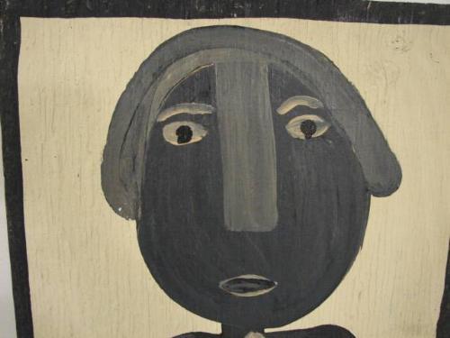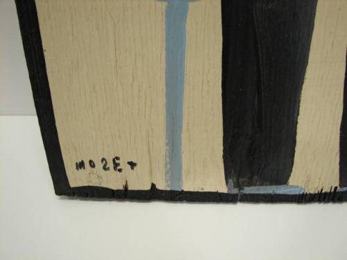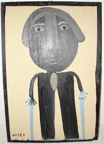 MOSE TOLLIVER FOLK ART PAINTING ON BOARD. Depicts a Black Americana Folk Art figure. Signed in lower left "MOSE T". 16" x 24"