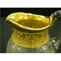Vintage Moser "Splendid" gold overlay pitcher. 1910. Intricately etched and overlaid with 24k gold. Signed on the bottom - Moser - Karlsbad. 8" tall. Authenticated. Condition: Excellent