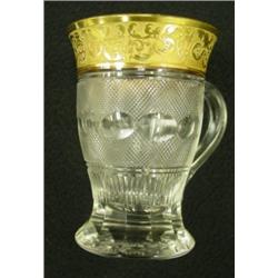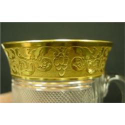 One vintage Moser "Splendid" lemonade cups. 1910. Intricately etched and overlaid with 24k gold. Signed on bottom - Moser - Karlsbad. 3.75" tall. Authenticated. Condition: Excellent
