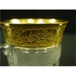 Set of 4 vintage Moser "Splendid" lemonade cups. 1910. Intricately etched and overlaid with 24k gold. Signed on bottom - Moser - Karlsbad. 3.75" tall. Authenticated. Condition: Excellent