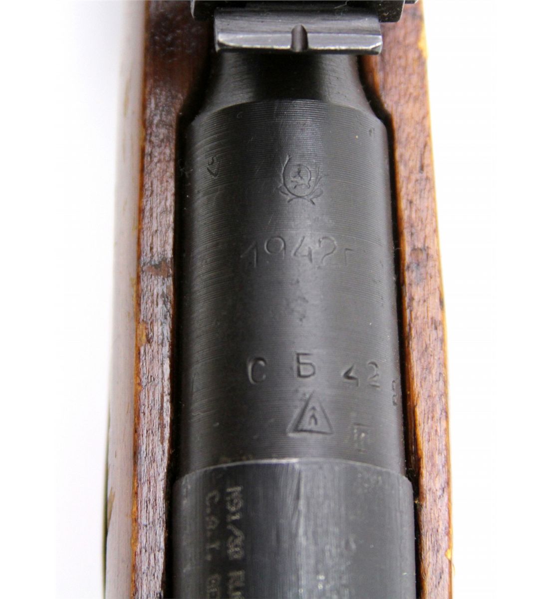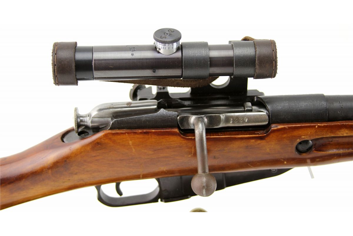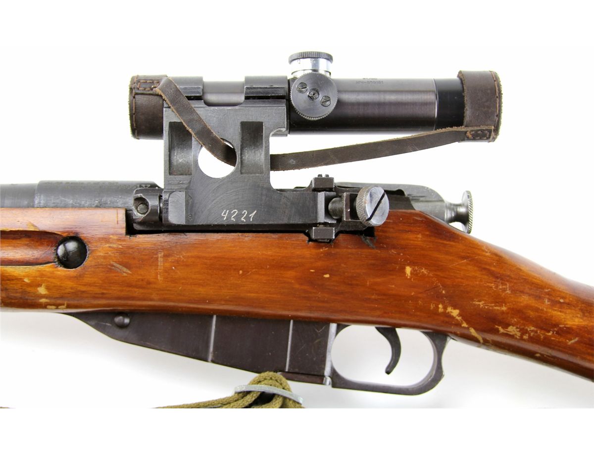 MOSIN NAGANT MODEL 91/30 SNIPER RIFLE MATCHING Soviet Mosin-Nagant M91/30 sniper rifle, with matching numbered parts with electropenciled serial number on scope mount. Izhevsk Arsenal marked on receiver, and dated 1942. Century Arms Import marked on top of chamber. Type: Rifle Manufacturer: Izhevsk Model: 91/30 Caliber / Gauge: 7.62x54R Serial Number: 4221 Condition: Good bore, stock and finish show expected surplus rifle war, but overall very good and free of cracks.