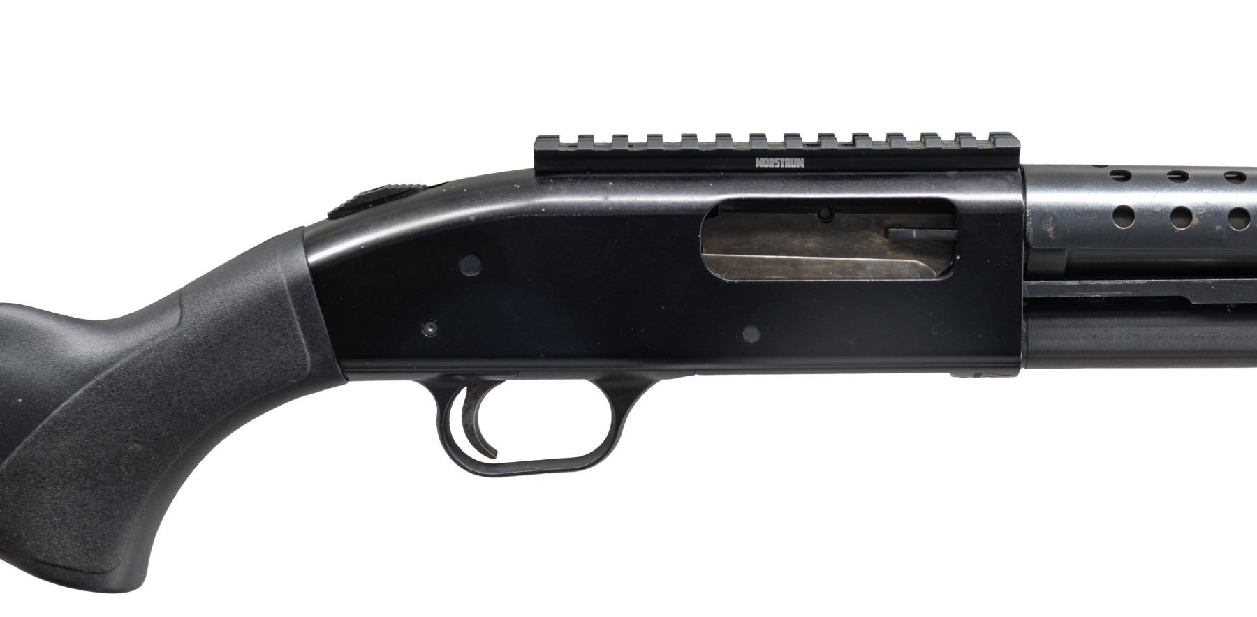 Cal. 12 Ga., 2 3/4" & 3". S# P320641. Bbl. 21" w/ heat shield & red painted bead. Cyl. bore. Monstrum accessory rail on receiver. Black synthetic stock set. CONDITION: good to very good overall appearance showing peppery oxidation on barrel & scattered light marks. Shiny bore. (25-4544/MD). MODERN. $300-500.