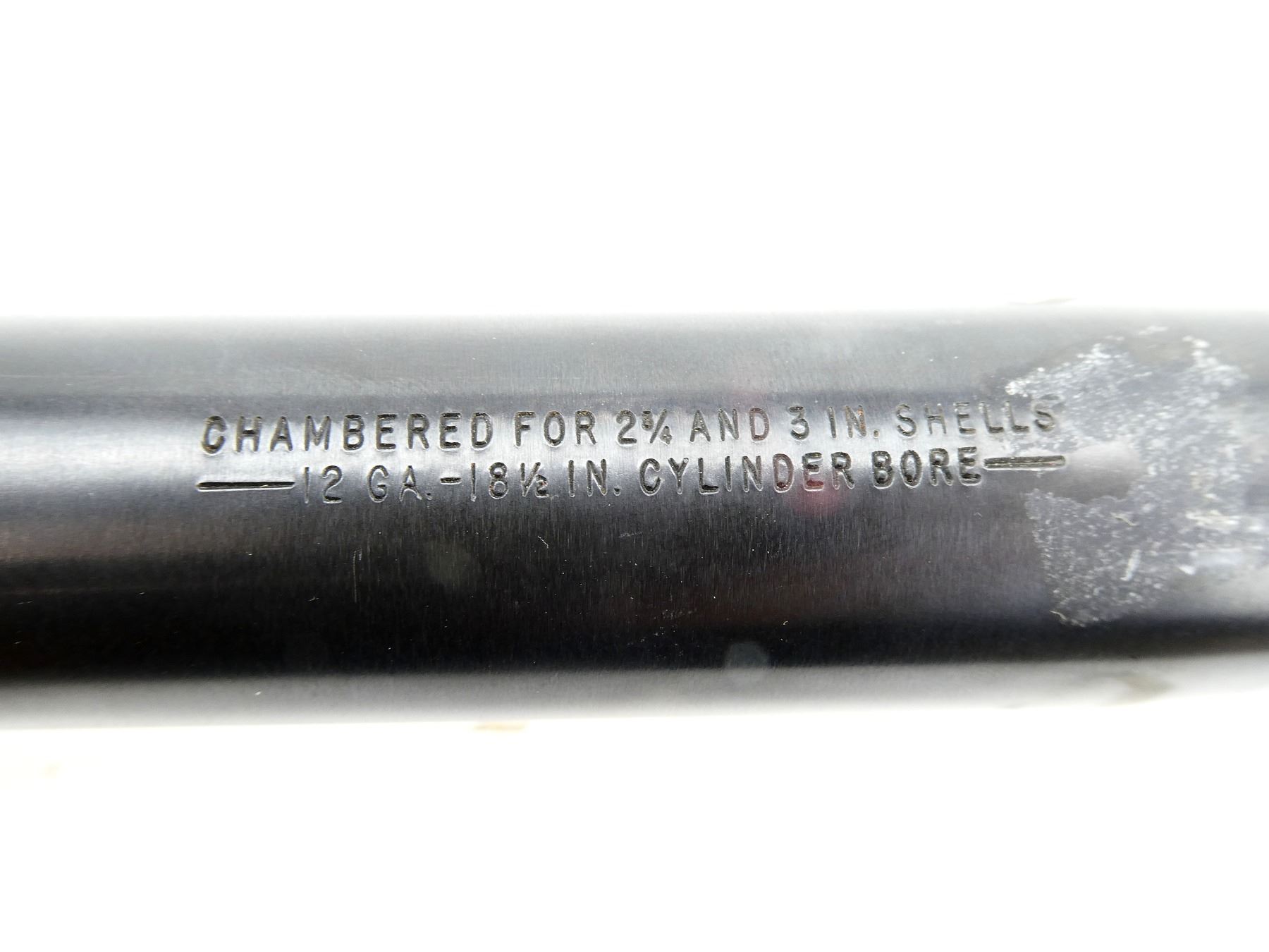 (1) 12 GAUGE X 3", BORE IS VERY GOOD, WITH FIXED CYLINDER CHOKE, BLUED STEEL CONSTRUCTION, MARKED: "12 GAUGE", ETC., WITH GREEN FIBER OPTIC FRONT BEAD, OAL APPROX. 19.75". MAY REQUIRE FITTING. SEE PHOTOS. PAL REQUIRED.