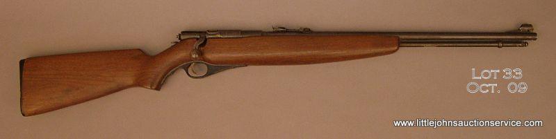 MOSSBERG Model 46M, .22 cal., 23” barrel, blued finish, smooth walnut stock. Rifle is in fair to good condition with minor pitting starting on the barrel and receiver. Est. $75-$150.