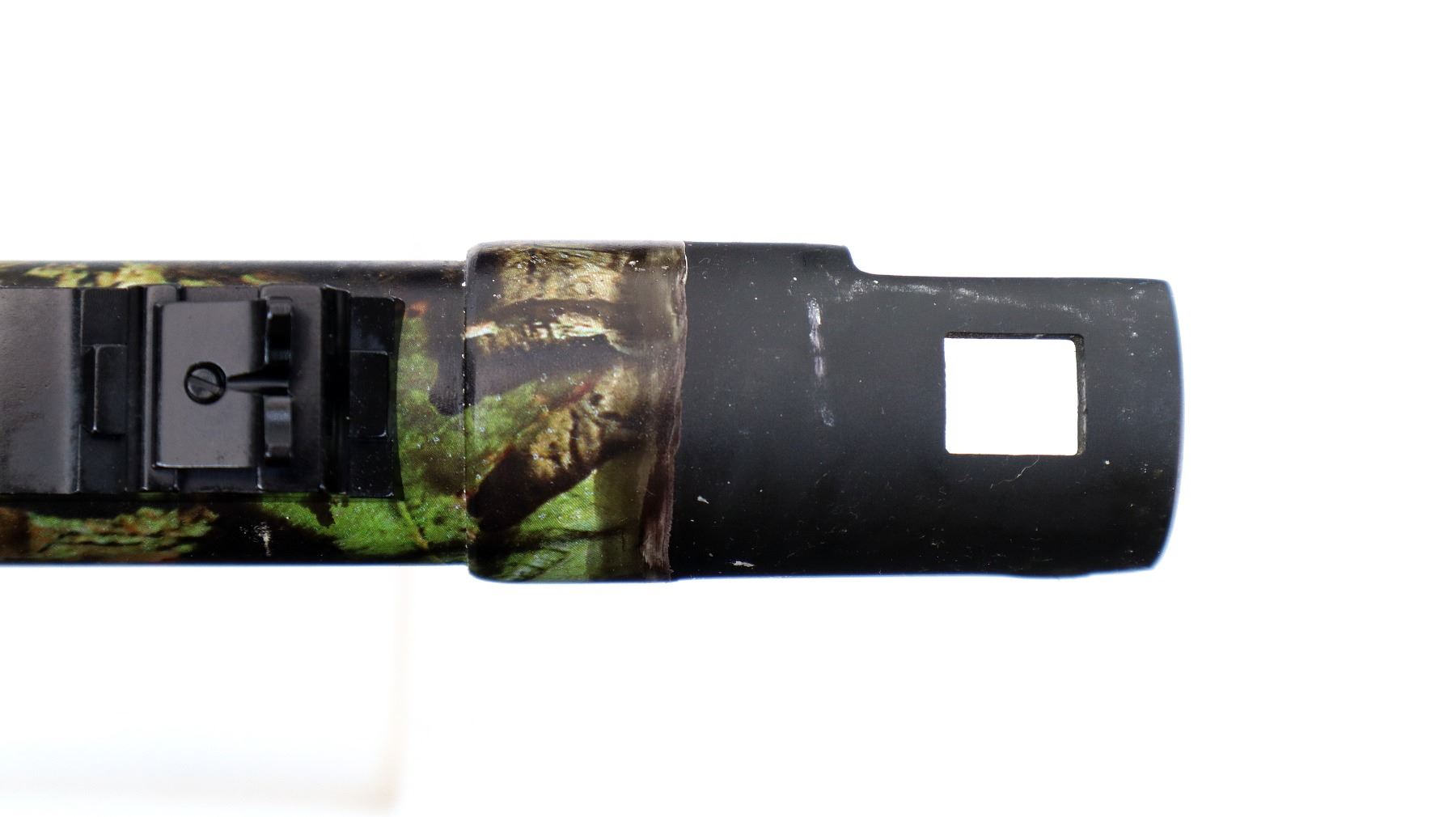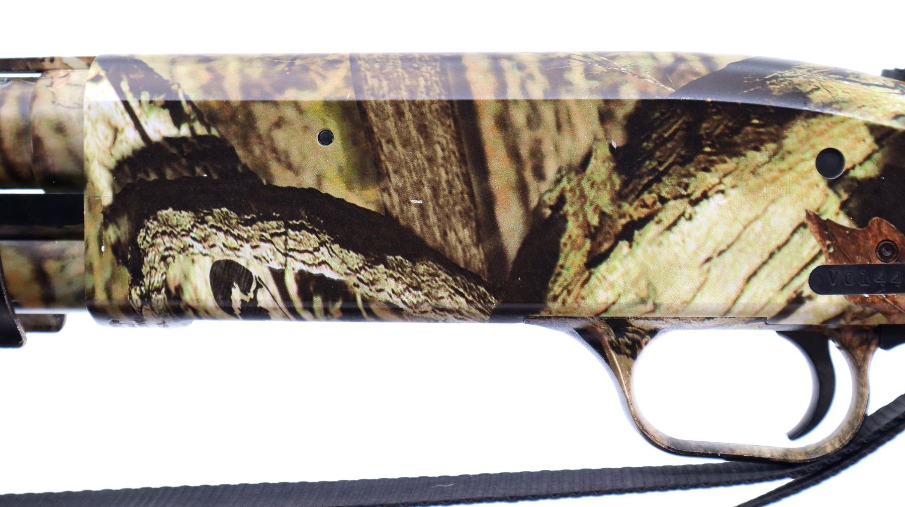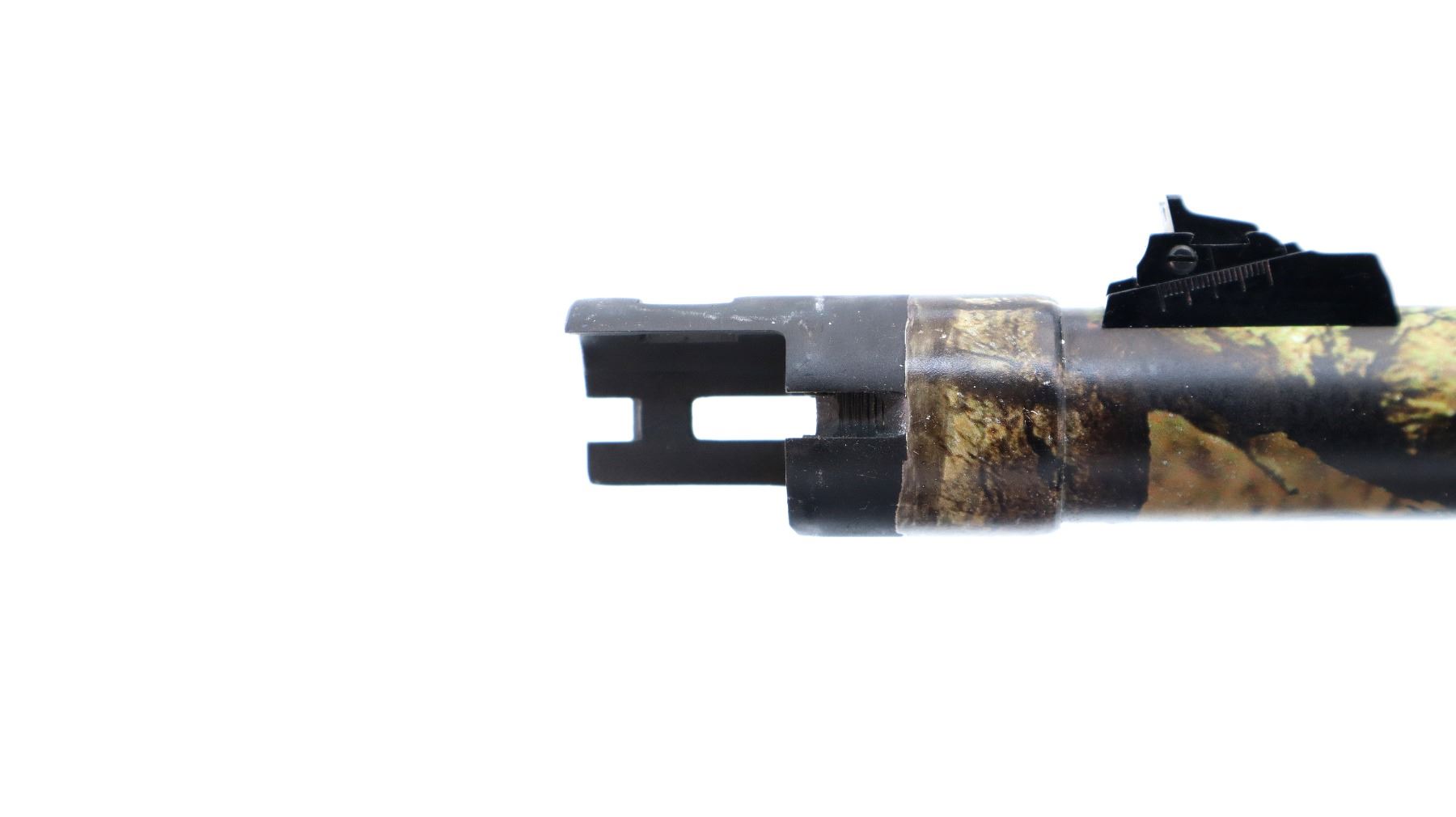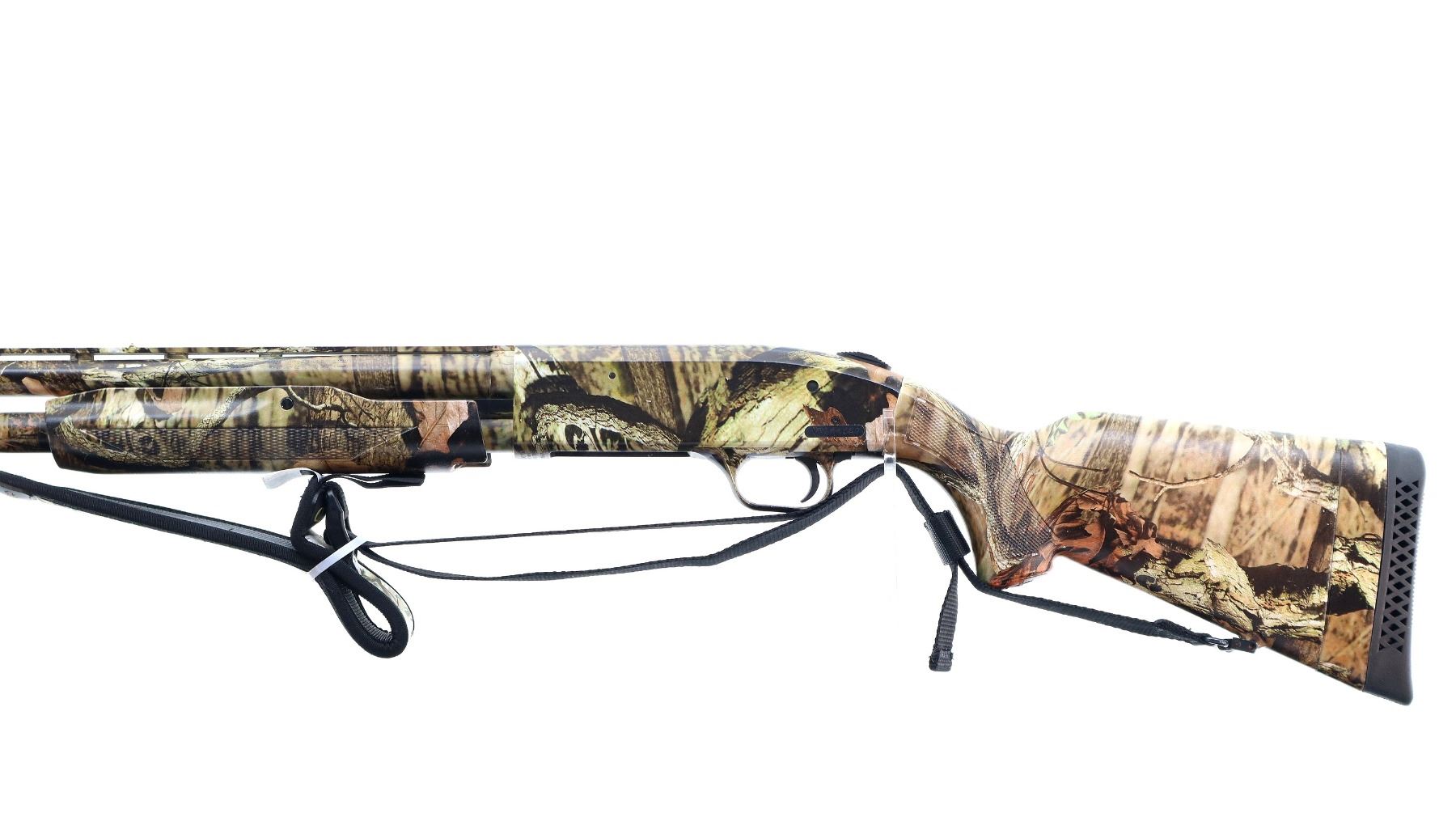 Main Description: White front and brass mid rib beads, Camo finish overall, vent rib, alloy receiver drilled and tapped with plug screws installed, tang safety. Two piece synthetic stocks, checkered forearm and pistol grip, slip on brown vented rubber recoil pad, sling swivels with camo nylon sling. Spare Barrel: 20 G X 3", 24", Very Good, Fully Rifled. Blade front sight with ramp, adjustable u notched rear sight, ported.
