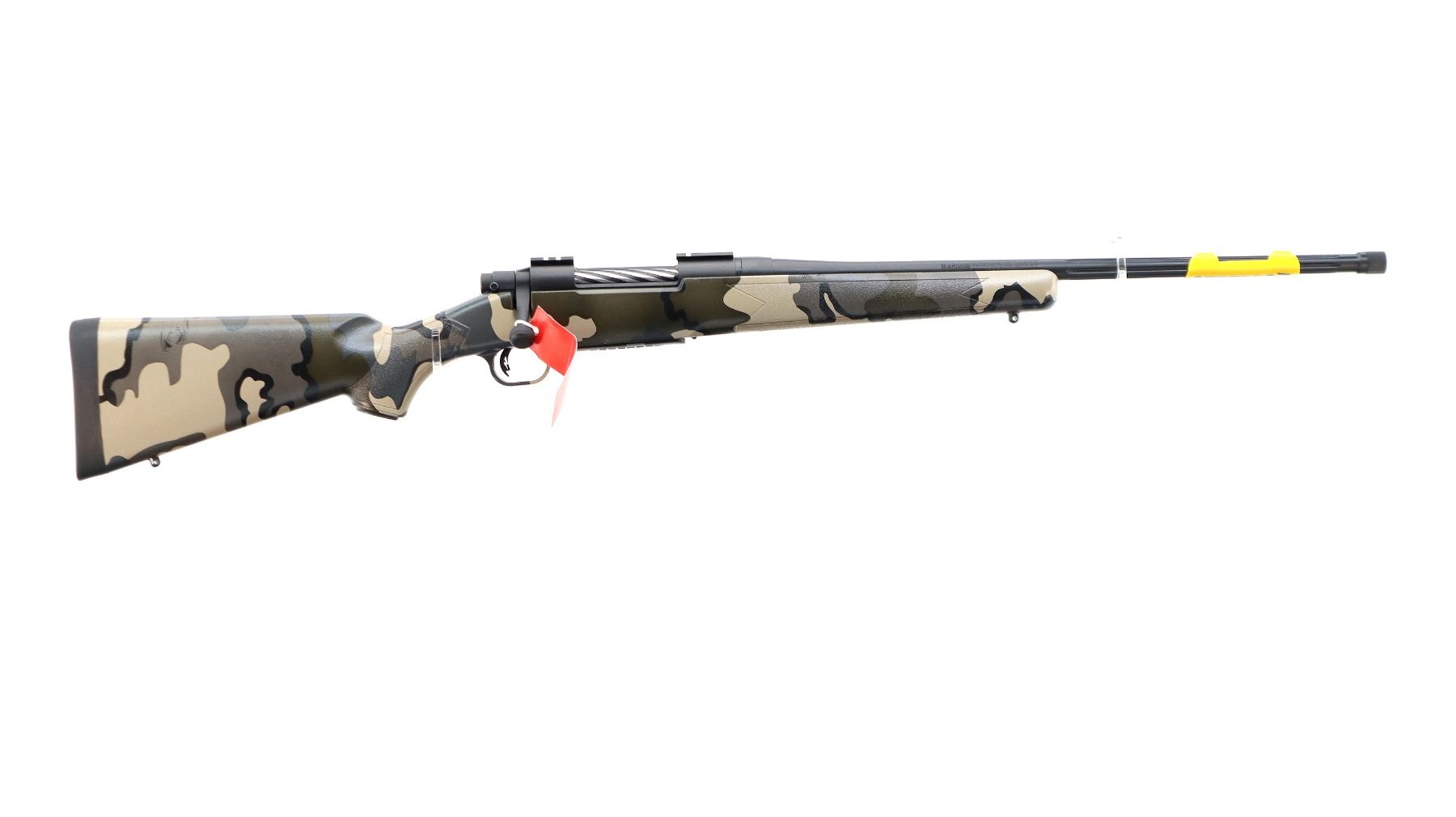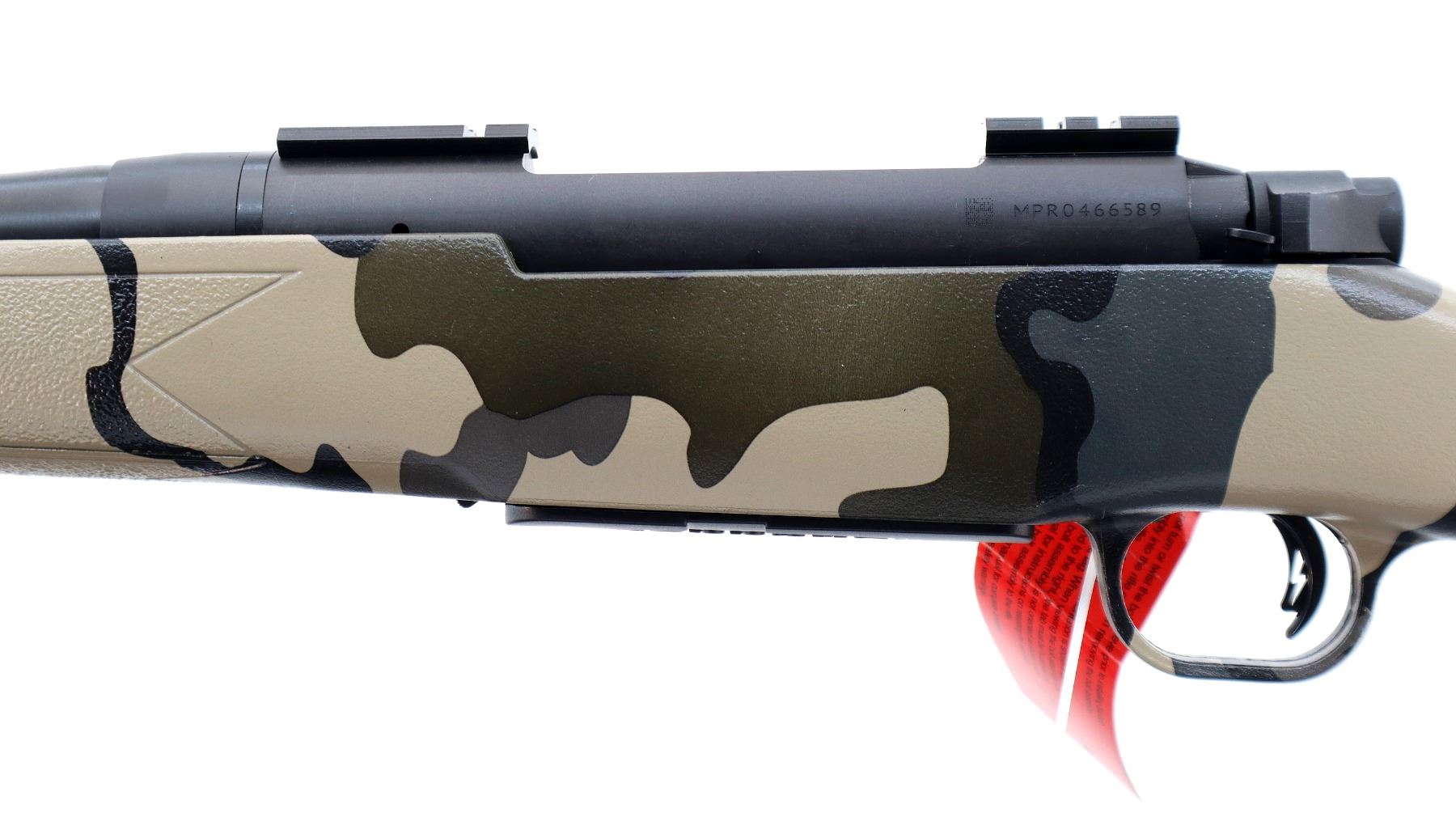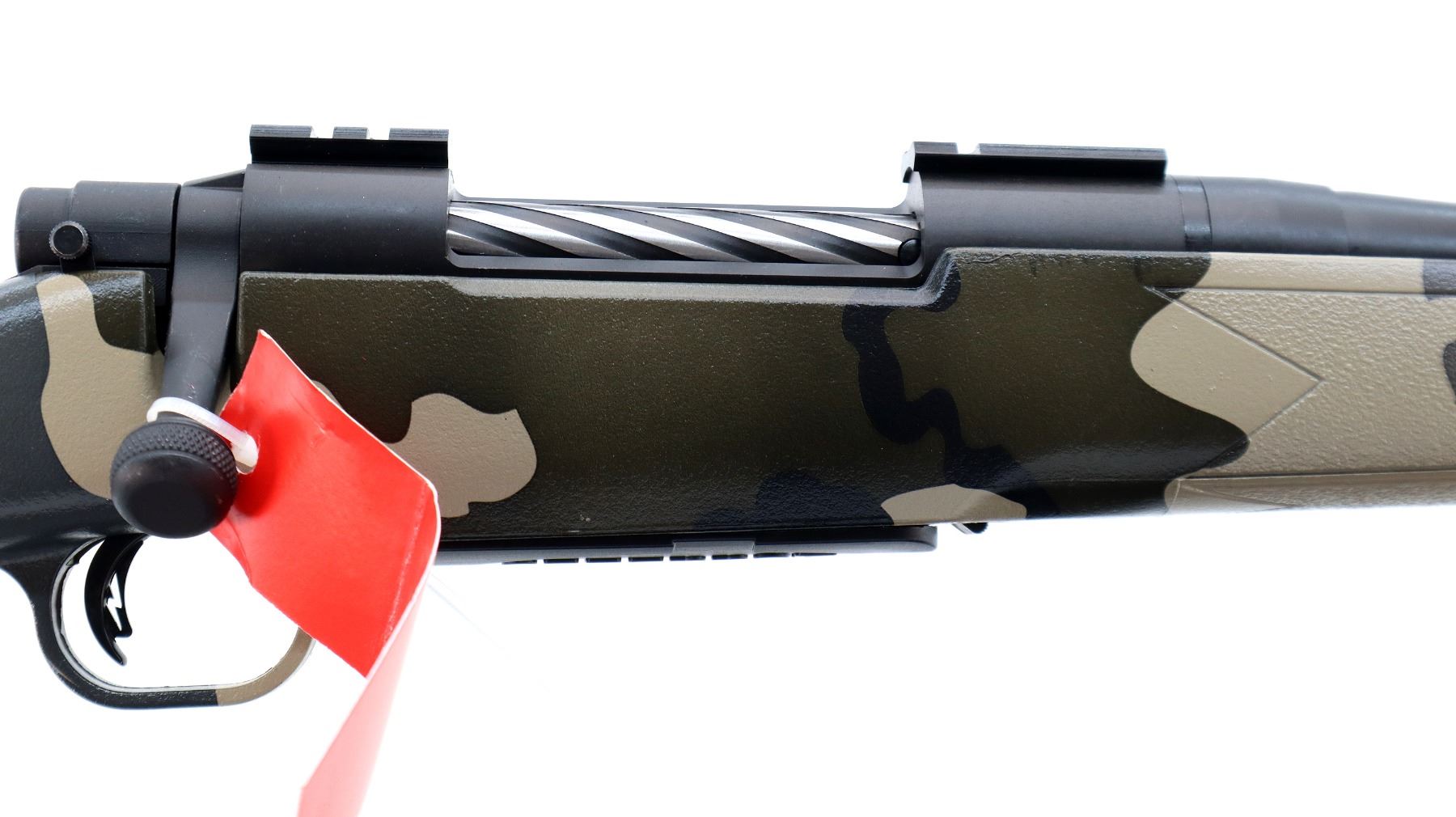 Main Description: No sights, Parkerized metal finish, fluted barrel, receiver drilled and tapped with two piece scope bases installed, fluted bolt with checkered knob. One piece Kuiu Camo Synthetic stock, textured forearm and pistol grip panels, cheek rest, black rubber recoil pad, 13.75" LOP, grip cap, swivel studs, threaded muzzle with cap, retains factory tag.