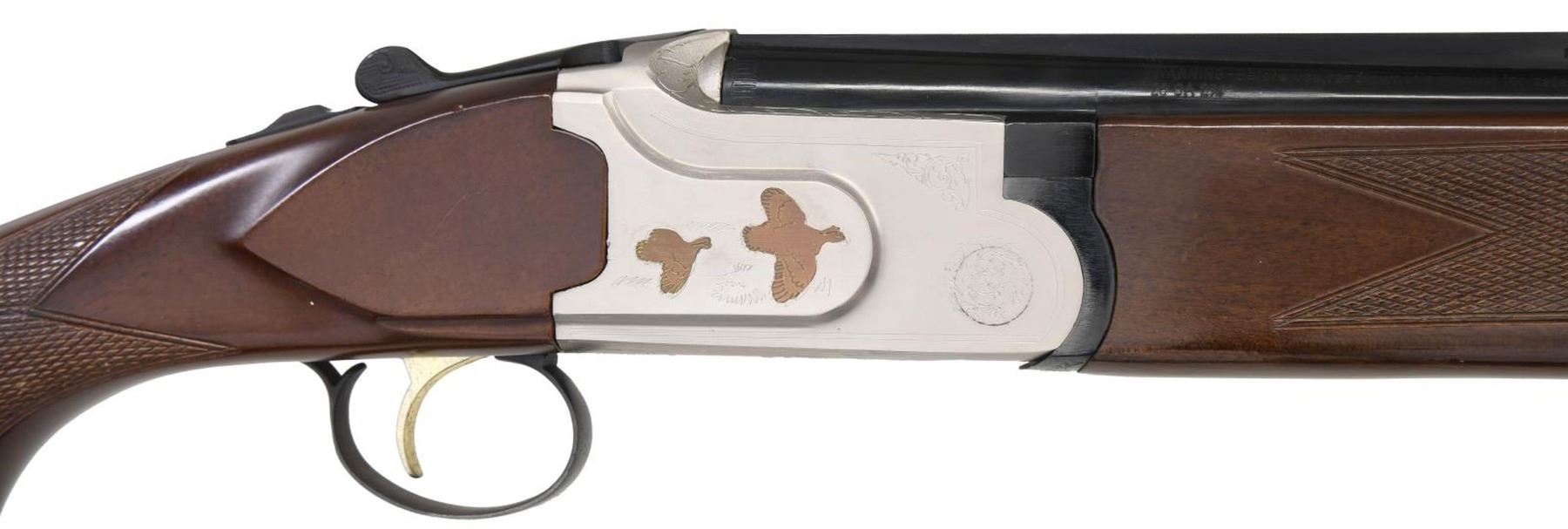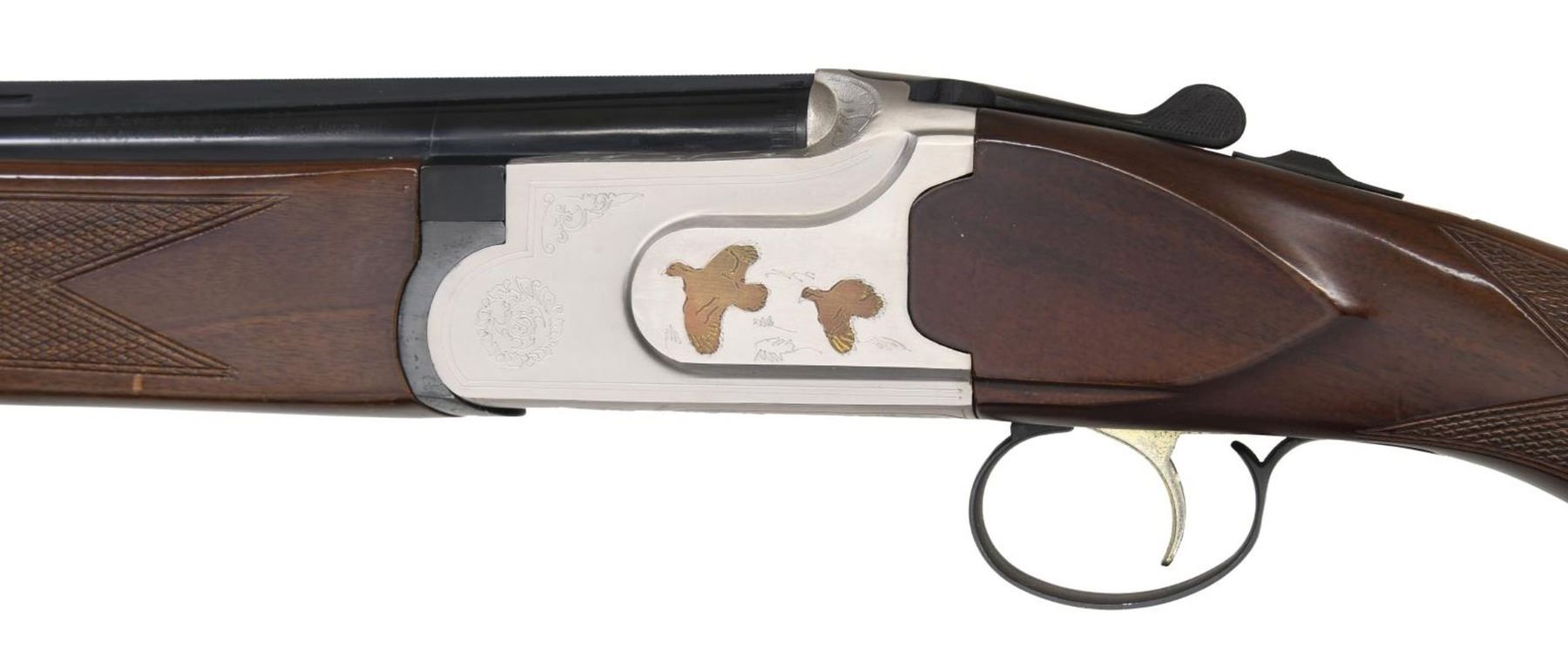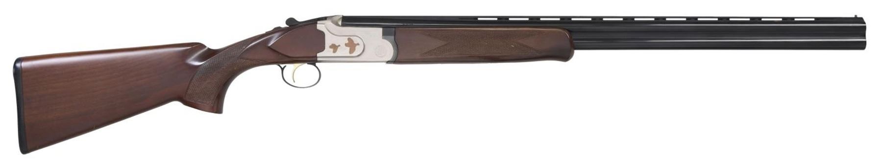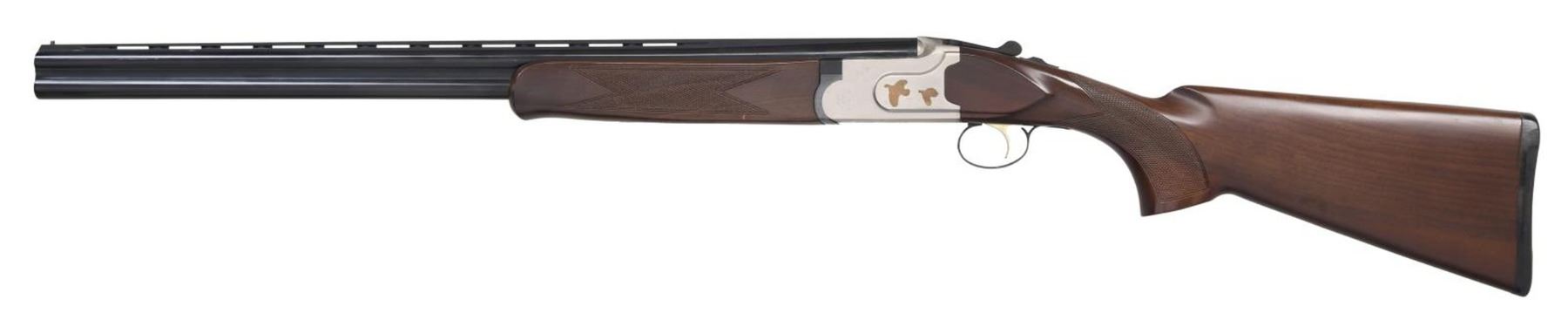 Cal. 28 ga. 2 3/4. S# TR28001863. Bbls. 26", vent rib w/ brass bead. Interchangeable choke tubes. IC & Mod tubes included. Satin finished boxlock action w/ plated flying Partridge on sides, surrounded by straight line borders & highlights of scroll ornamentation. Anodized finished SST. Extractors. Schnable tipped forearm & pistol grip stock of dark finished, checkered hardwood. LOP: 14 3/8" over a thin black sporting clay's style pad. Mfg. in Turkey by Kayhan Art S.S. CONDITION: 98% metal finish. Very good wood finish shows small handling marks. Very good bores. (23-7375/DS). MODERN. $450-600.