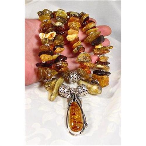 A fabulous selection of fine natural Baltic amber complimented with the finest of tribal silver creating a ONE OF A KIND Materpiece. The gram weight is 210 and by anyone's standards this is a HUGE piece of jewelry. The centerpiece fashioned in sterling has measurements of 79mm in length. The largest piece of amber has measurements of 46mm!! For those not familiar with metric 25mm=1". The necklace has a length of 16". As with all our amber guaranteed to be just that...Baltic amber of the highest quality.