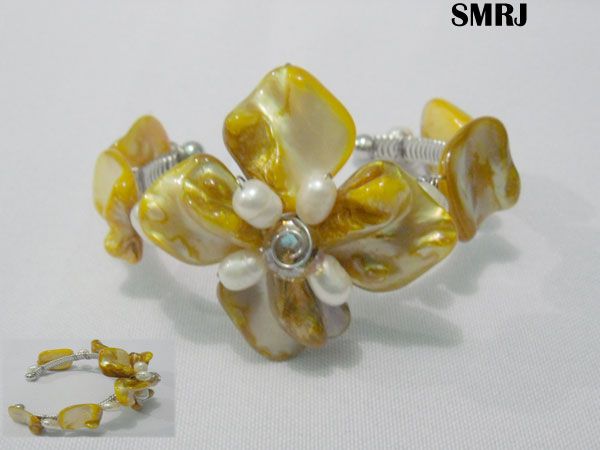 MOTHER OF PEARL YELLOW AND WHITE PEARL BANGLE *** METAL **|**|** MOTHER OF PEARL YELLOW AND WHITE PEARL BANGLE *** METAL: SILVER; 40 GRAMS ; MSRP: $500