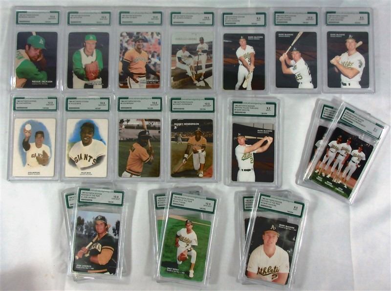 EXTRA GRADED CARDS - 1984 A's, 1984 GIANTS AS, 1986 A's, 1987 A's, 8- 1989 MARK McGWIRE GRADED, 2- 1989 WEISS GRADED, 1- 1989 CANSECO GRADED ESTIMATE $100 - $120.