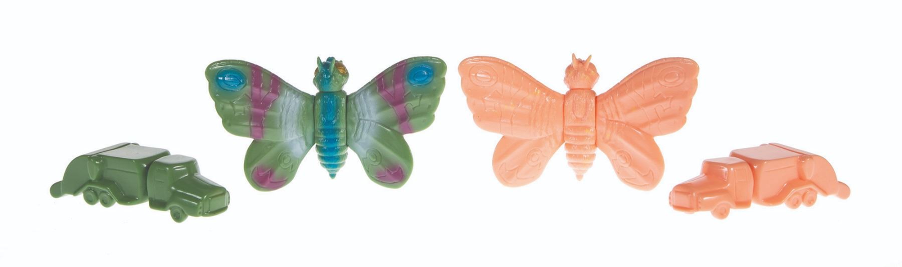 2001. Marmit Mothra & Truck (Green/Painted Versions/Beige Versions). Mothra: 2” (4. 5” wingspan). VG+.